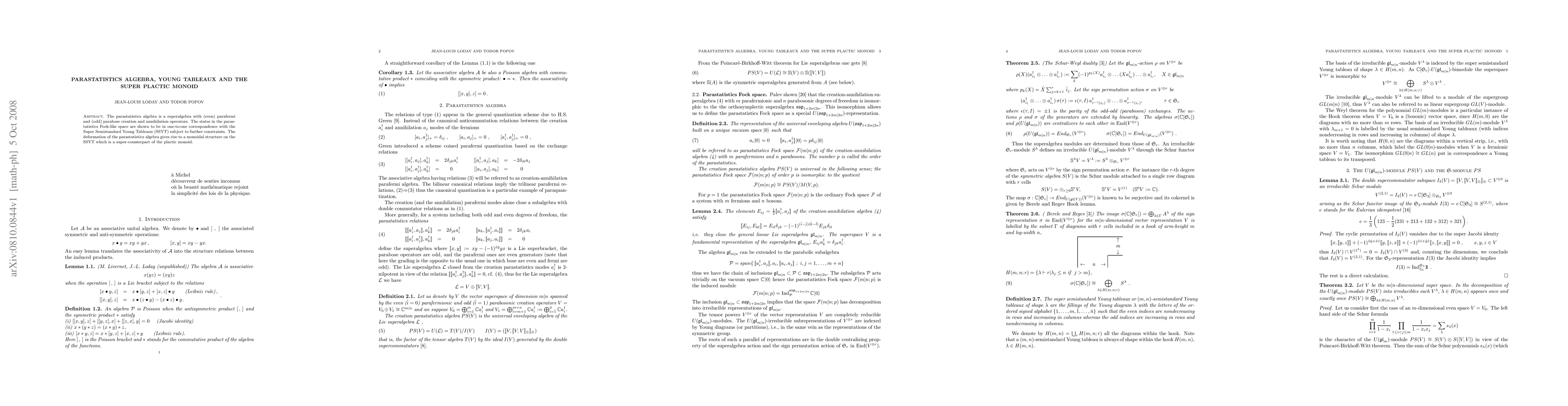 The parastatistics algebra is a superalgebra with (even) parafermi and (odd) parabose creation and annihilation operators. The states in the parastatistics Fock-like space are shown to be in one-to-one correspondence with the Super Semistandard Young Tableaux (SSYT) subject to further constraints. The deformation of the parastatistics algebra gives rise to a monoidal structure on the SSYT which is a super-counterpart of the plactic monoid.
