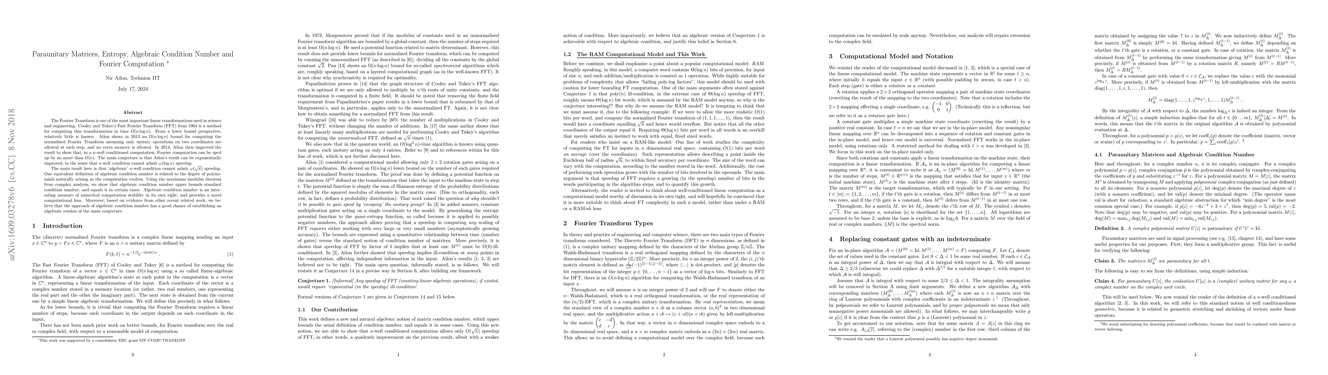 This paper investigates the relationship between paraunitary matrices, entropy, and the algebraic condition number in the context of Fourier computation. It demonstrates that the algebraic condition number, which considers polynomial multiplications, admits no more than $O(\sqrt{\kappa})$ speedup, providing a tighter bound than previously known results.