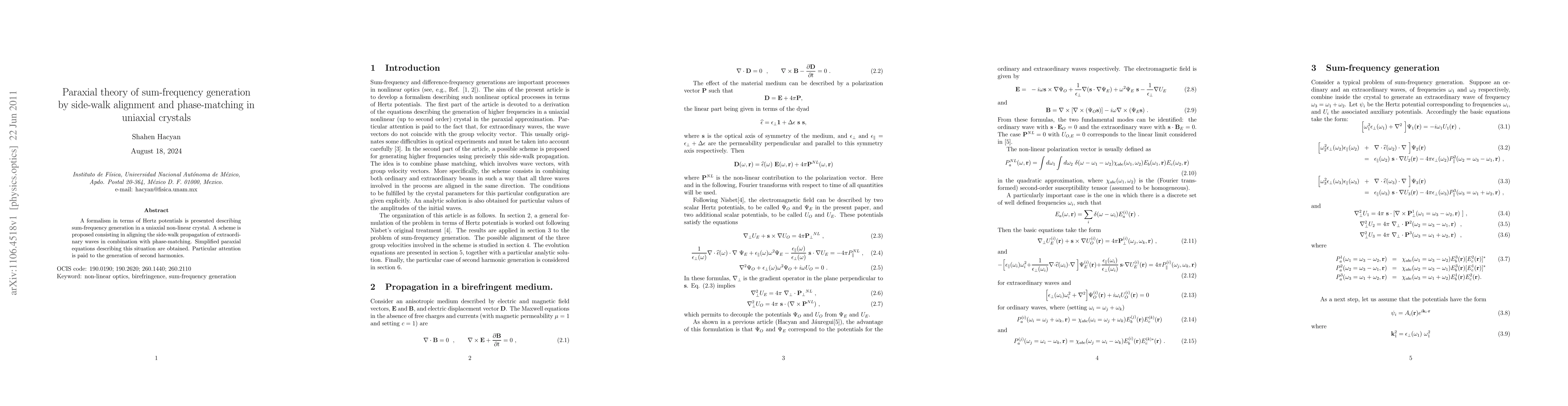 Researchers developed a paraxial theory explaining how sum-frequency generation occurs in uniaxial crystals through side-walk alignment and phase-matching, with implications for generating second harmonics.