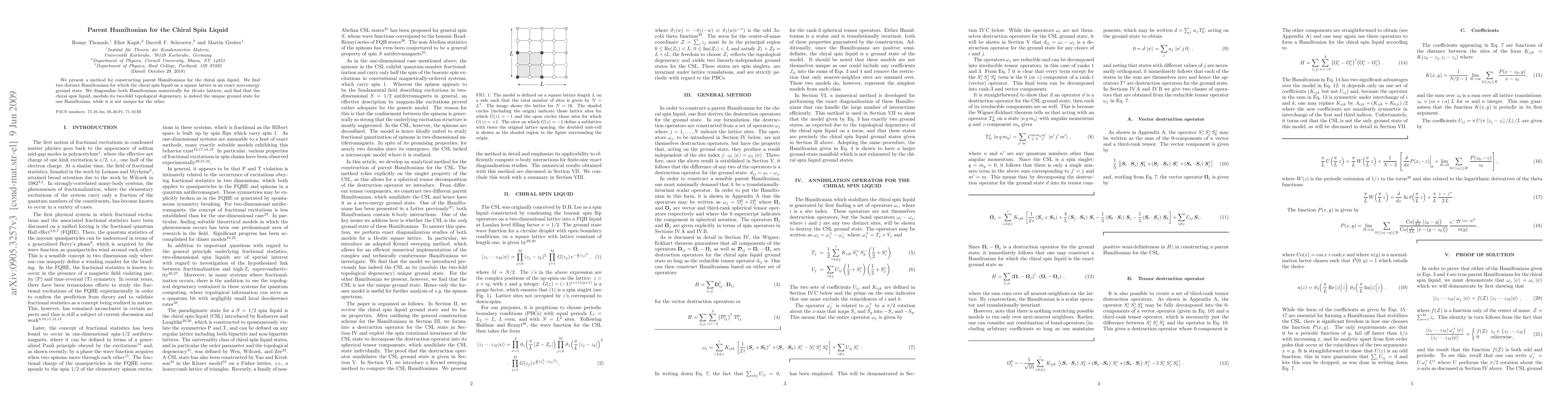 This paper constructs two distinct parent Hamiltonians for the chiral spin liquid on a square lattice, finding that the chiral spin liquid is the exact zero-energy ground state for one, while it is not unique for the other, as demonstrated through numerical diagonalization on 16-site lattices.
