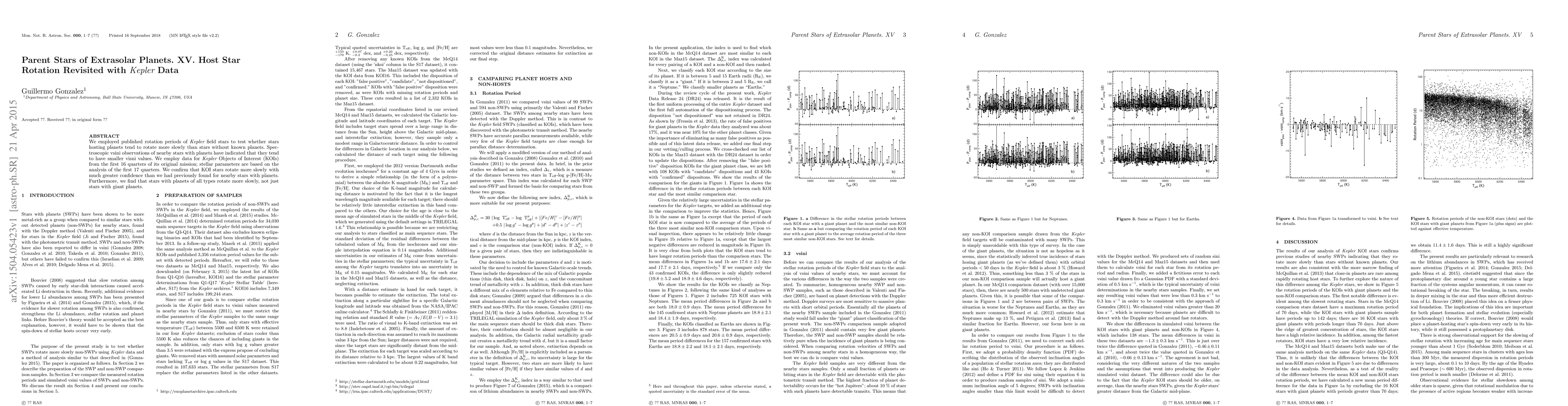 This study confirms that stars hosting extrasolar planets, particularly those observed by Kepler, rotate more slowly than stars without known planets. The findings extend to all types of planets, not just giant ones, indicating a broader correlation between planetary presence and stellar rotation.