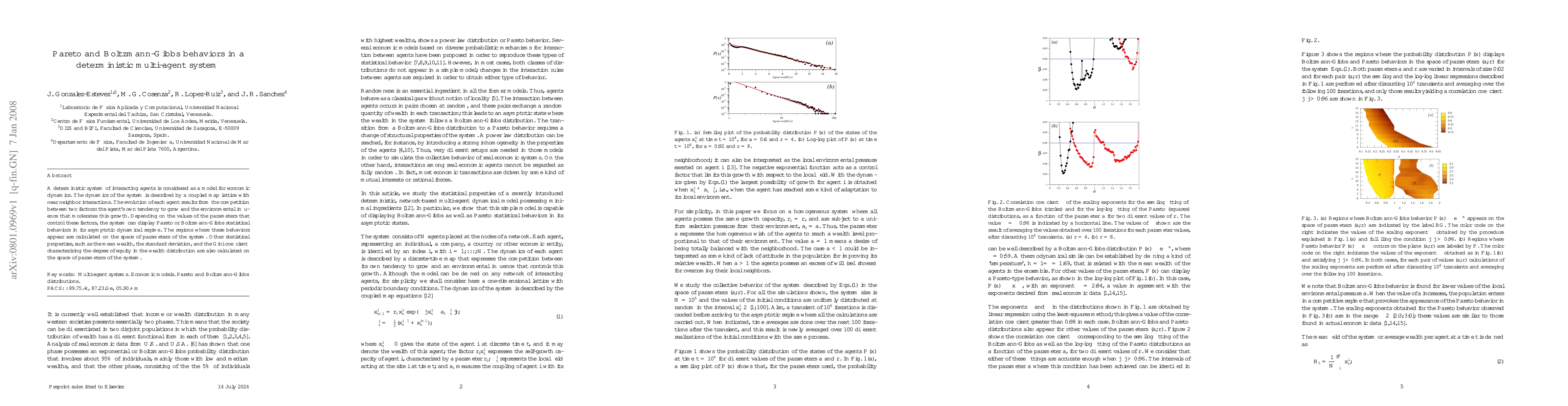 A deterministic system of interacting agents is considered as a model for economic dynamics. The dynamics of the system is described by a coupled map lattice with near neighbor interactions. The evolution of each agent results from the competition between two factors: the agent's own tendency to grow and the environmental influence that moderates this growth. Depending on the values of the parameters that control these factors, the system can display Pareto or Boltzmann-Gibbs statistical behaviors in its asymptotic dynamical regime. The regions where these behaviors appear are calculated on the space of parameters of the system. Other statistical properties, such as the mean wealth, the standard deviation, and the Gini coefficient characterizing the degree of equity in the wealth distribution are also calculated on the space of parameters of the system.