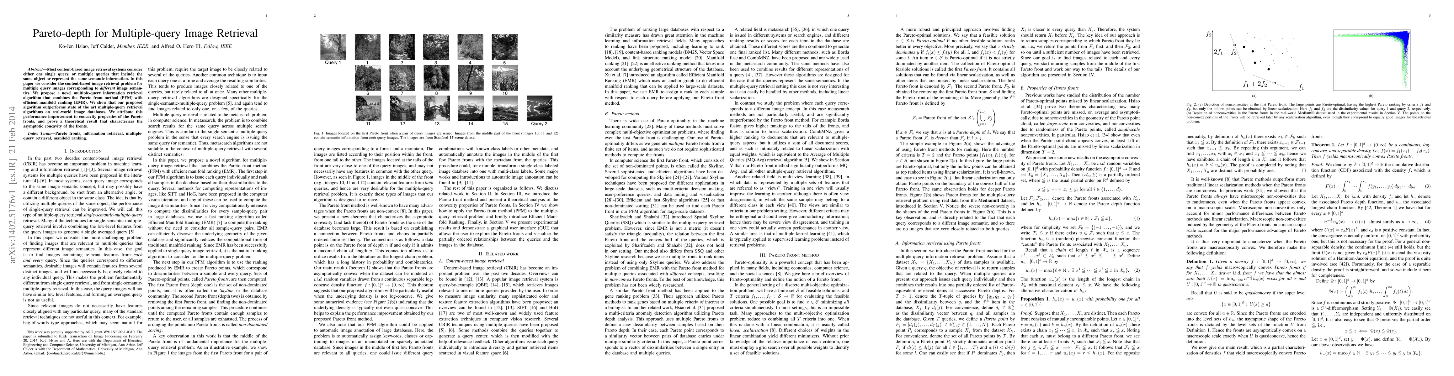 A new algorithm combining Pareto front method and efficient manifold ranking outperforms state-of-the-art multiple-query image retrieval algorithms on real-world databases.