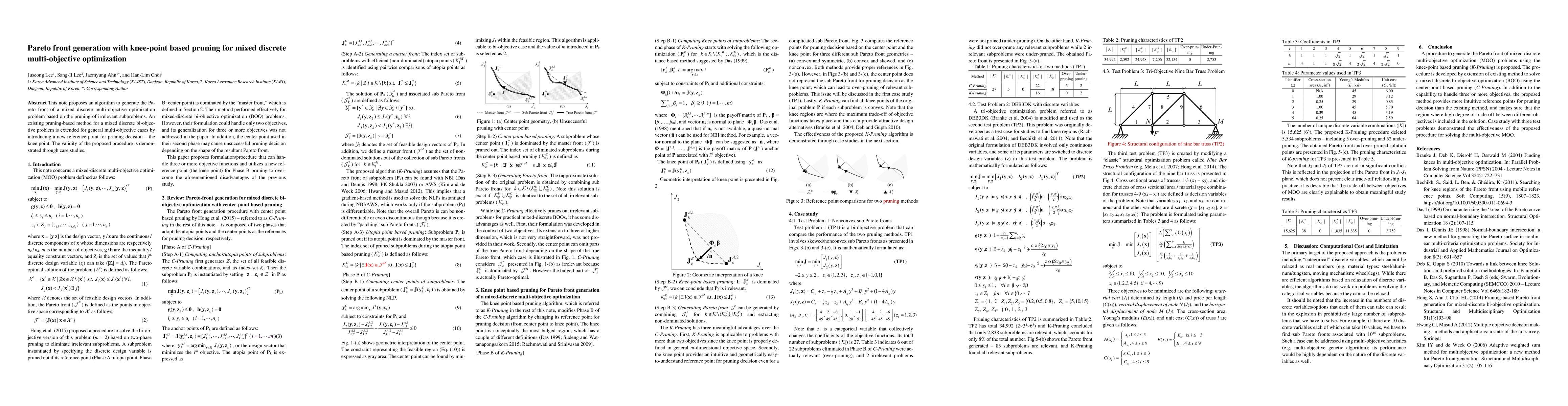 This paper introduces an algorithm for generating the Pareto front in mixed discrete multi-objective optimization by employing knee-point based pruning to eliminate irrelevant subproblems. The method extends existing bi-objective pruning techniques and is validated through case studies.