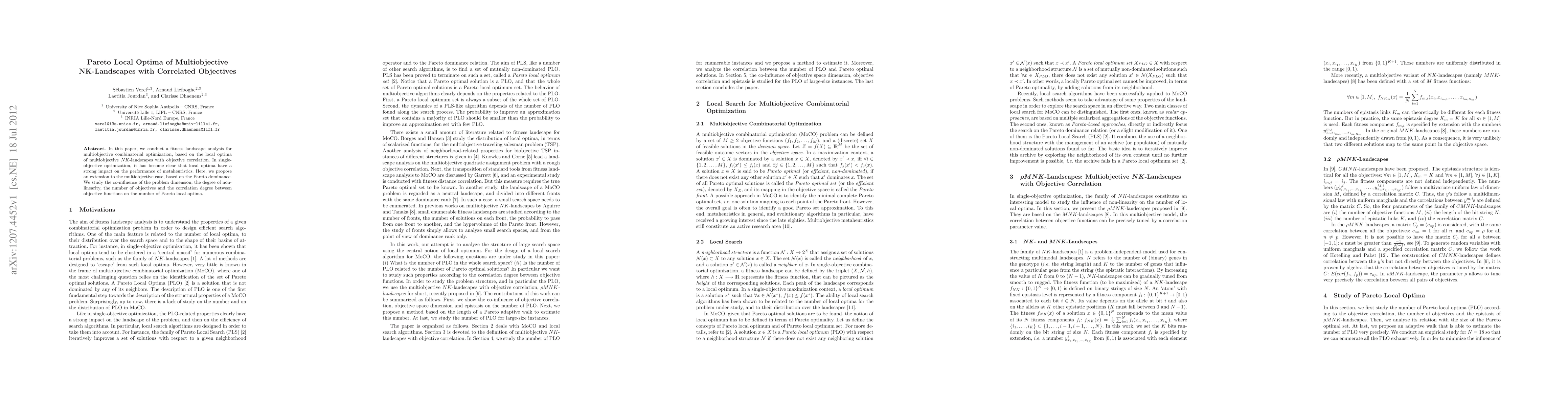 In this paper, we conduct a fitness landscape analysis for multiobjective combinatorial optimization, based on the local optima of multiobjective NK-landscapes with objective correlation. In single-objective optimization, it has become clear that local optima have a strong impact on the performance of metaheuristics. Here, we propose an extension to the multiobjective case, based on the Pareto dominance. We study the co-influence of the problem dimension, the degree of non-linearity, the number of objectives and the correlation degree between objective functions on the number of Pareto local optima.