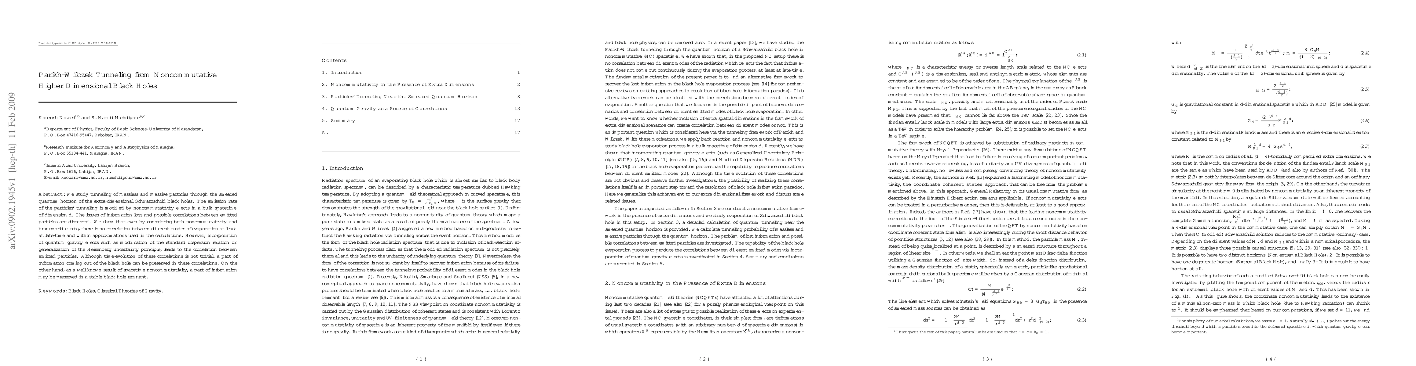 We study tunneling of massless and massive particles through the smeared quantum horizon of the extra-dimensional Schwarzschild black holes. The emission rate of the particles' tunneling is modified by noncommutativity effects in a bulk spacetime of dimension $d$. The issues of information loss and possible correlations between emitted particles are discussed. We show that even by considering both noncommutativity and braneworld effects, there is no correlation between different modes of evaporation at least at late-time and within approximations used in the calculations. However, incorporation of quantum gravity effects such as modification of the standard dispersion relation or generalization of the Heisenberg uncertainty principle, leads to the correlation between emitted particles. Although time-evolution of these correlations is not trivial, a part of information coming out of the black hole can be preserved in these correlations. On the other hand, as a well-known result of spacetime noncommutativity, a part of information may be preserved in a stable black hole remnant.