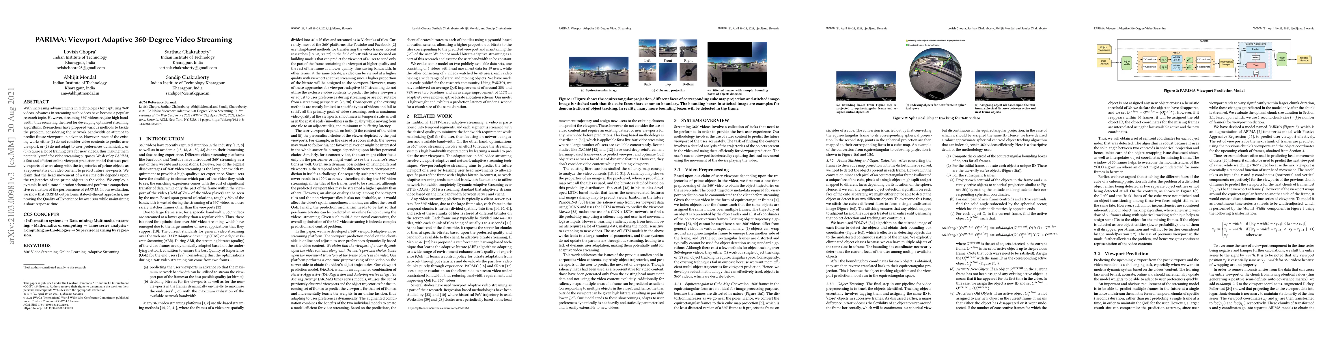 PARIMA presents an adaptive 360-degree video streaming algorithm that predicts future user viewports using past viewports and prime object trajectories, optimizing bitrate allocation. It outperforms existing methods by improving Quality of Experience by over 30% while ensuring quick response times.