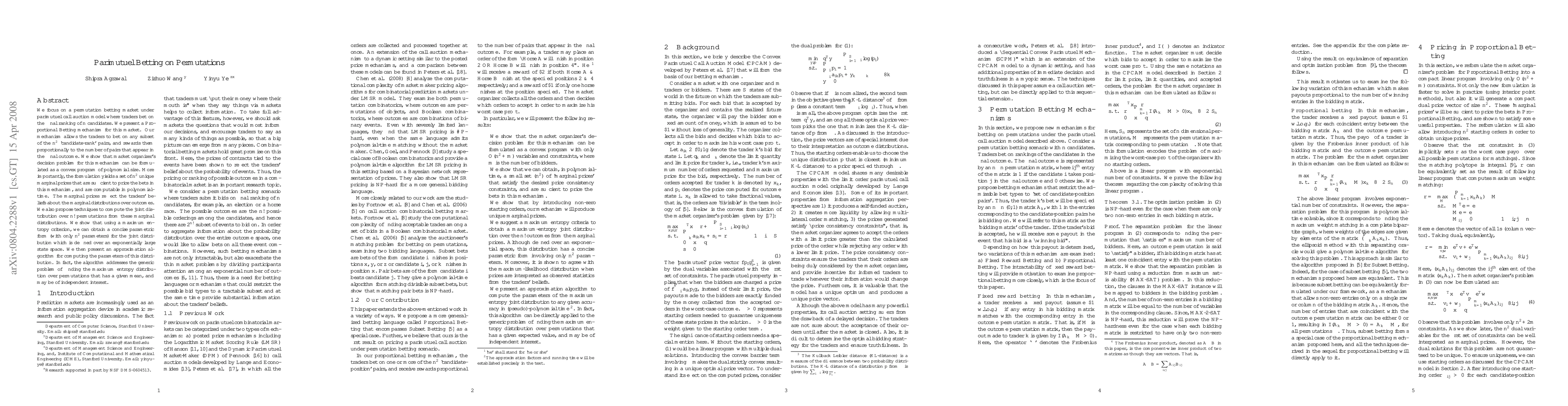 We focus on a permutation betting market under parimutuel call auction model where traders bet on the final ranking of n candidates. We present a Proportional Betting mechanism for this market. Our mechanism allows the traders to bet on any subset of the n x n 'candidate-rank' pairs, and rewards them proportionally to the number of pairs that appear in the final outcome. We show that market organizer's decision problem for this mechanism can be formulated as a convex program of polynomial size. More importantly, the formulation yields a set of n x n unique marginal prices that are sufficient to price the bets in this mechanism, and are computable in polynomial-time. The marginal prices reflect the traders' beliefs about the marginal distributions over outcomes. We also propose techniques to compute the joint distribution over n! permutations from these marginal distributions. We show that using a maximum entropy criterion, we can obtain a concise parametric form (with only n x n parameters) for the joint distribution which is defined over an exponentially large state space. We then present an approximation algorithm for computing the parameters of this distribution. In fact, the algorithm addresses the generic problem of finding the maximum entropy distribution over permutations that has a given mean, and may be of independent interest.