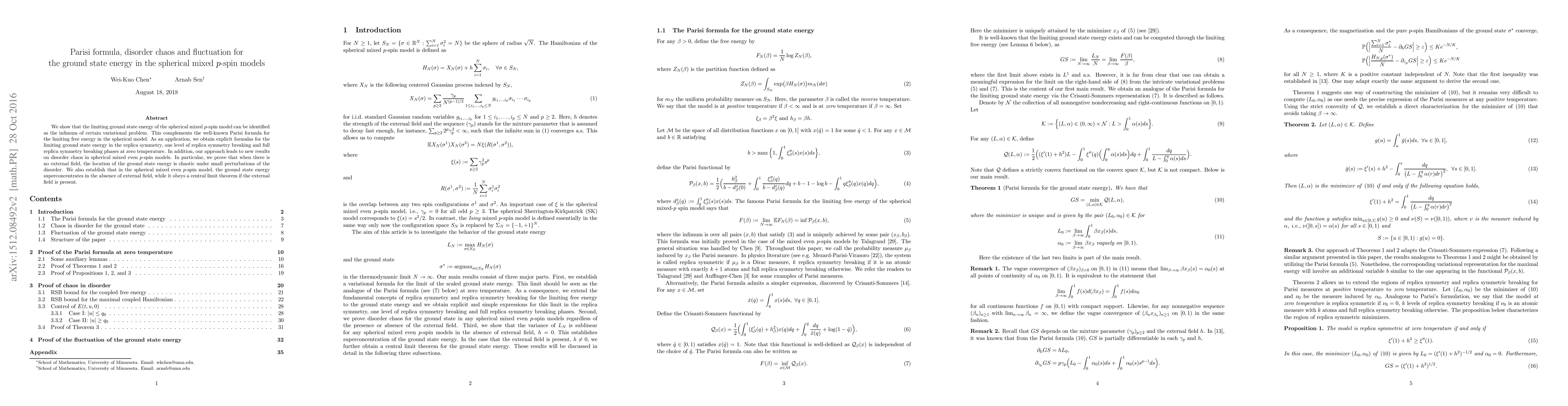 This paper identifies the limiting ground state energy of the spherical mixed p-spin model as the infimum of a variational problem, extending the Parisi formula for free energy. It provides explicit formulas for ground state energy in various replica symmetry phases and reveals disorder chaos and superconcentration properties of the ground state energy under different conditions.