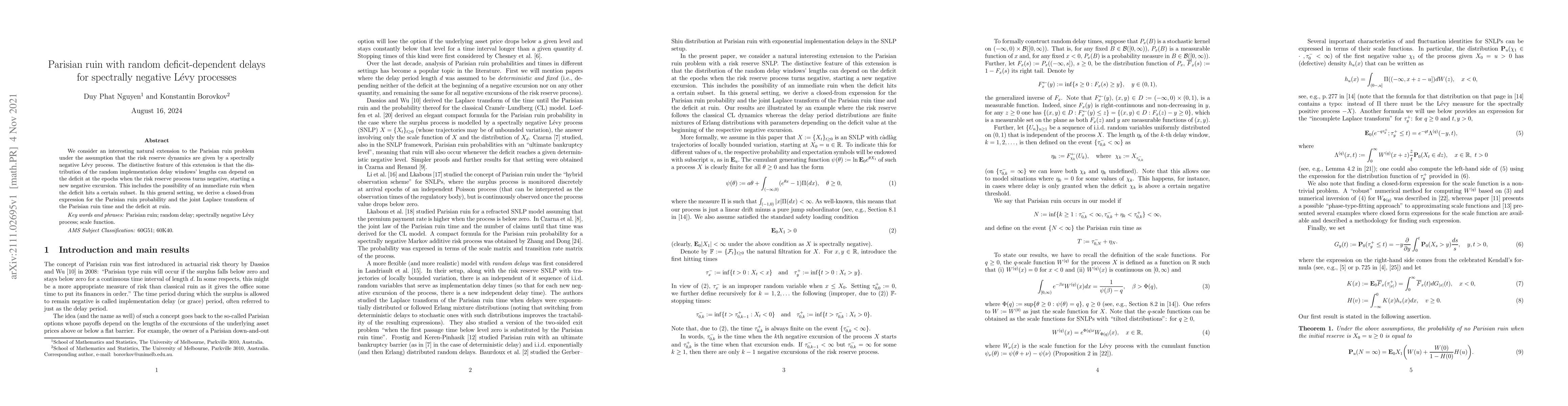 We consider an interesting natural extension to the Parisian ruin problem under the assumption that the risk reserve dynamics are given by a spectrally negative L\'evy process. The distinctive feature of this extension is that the distribution of the random implementation delay windows' lengths can depend on the deficit at the epochs when the risk reserve process turns negative, starting a new negative excursion. This includes the possibility of an immediate ruin when the deficit hits a certain subset. In this general setting, we derive a closed-from expression for the Parisian ruin probability and the joint Laplace transform of the Parisian ruin time and the deficit at ruin.
