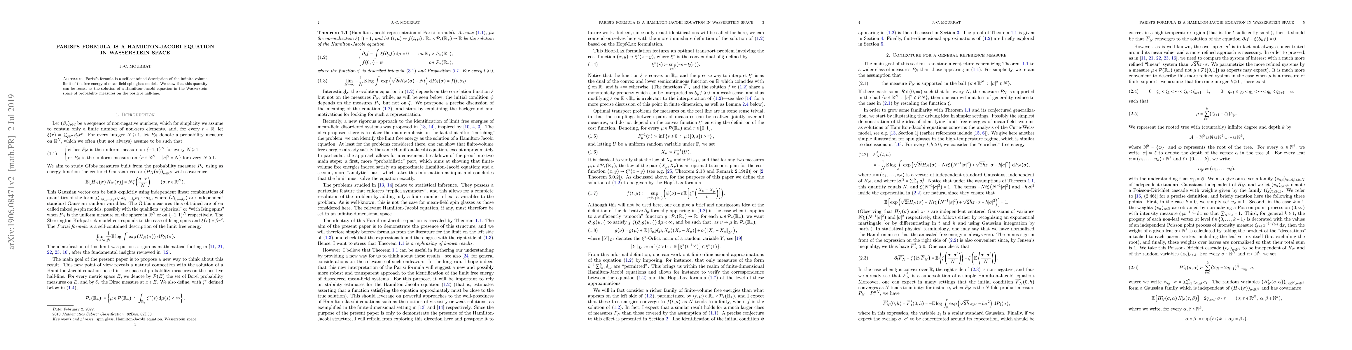 Parisi's formula is a self-contained description of the infinite-volume limit of the free energy of mean-field spin glass models. We show that this quantity can be recast as the solution of a Hamilton-Jacobi equation in the Wasserstein space of probability measures on the positive half-line.