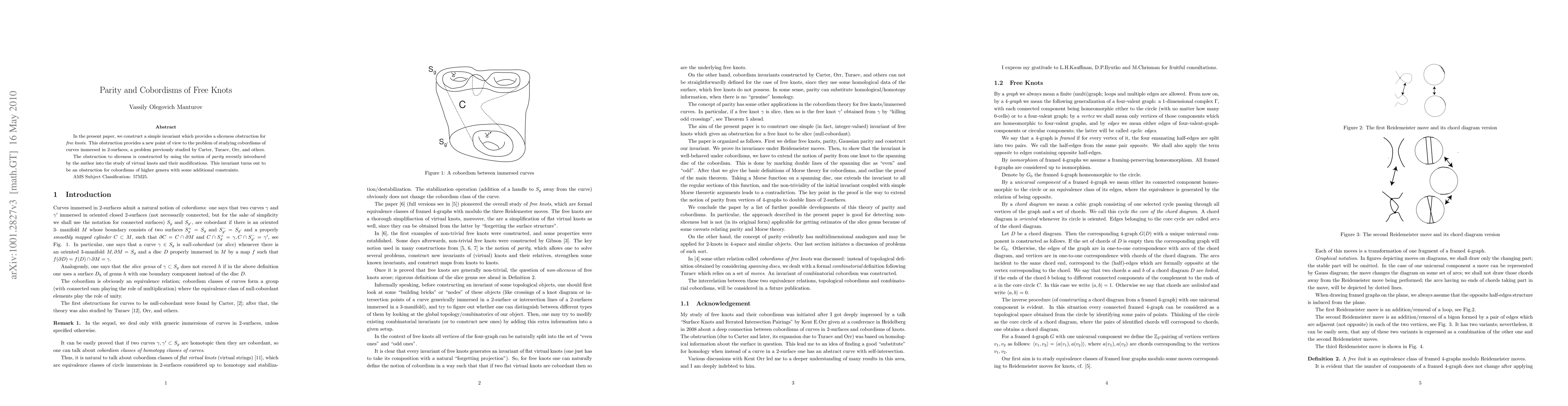 This paper introduces a new invariant based on the concept of parity to provide an obstruction for the sliceness of free knots. It offers a fresh perspective on cobordisms of immersed curves in 2-surfaces, expanding on previous work by Carter, Turaev, and Orr.