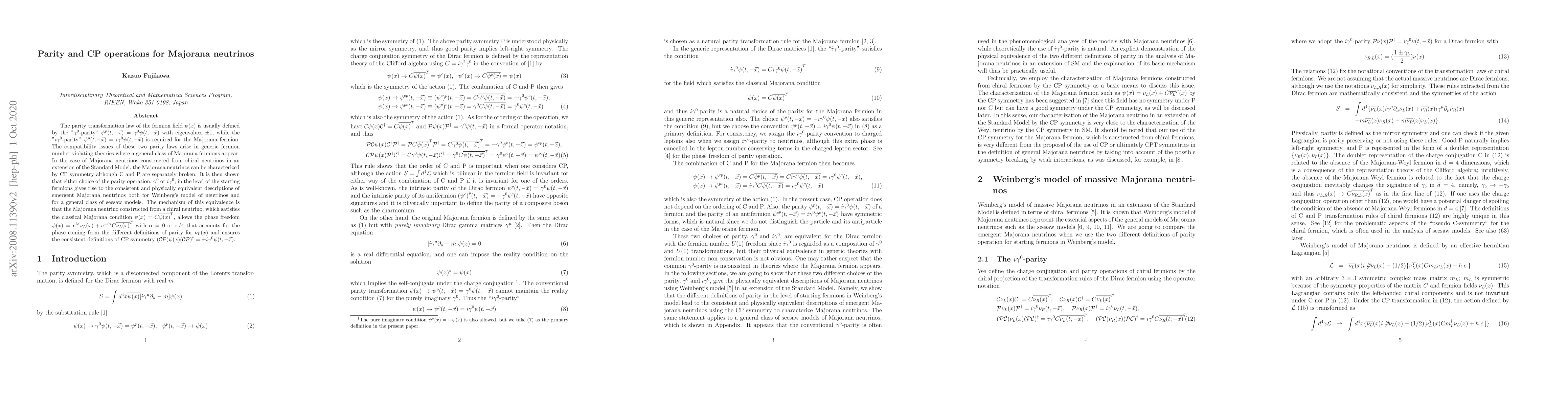 The parity transformation law of the fermion field $\psi(x)$ is usually defined by the "$\gamma^{0}$-parity" $\psi^{p}(t,-\vec{x}) = \gamma^{0}\psi(t,-\vec{x})$ with eigenvalues $\pm 1$, while the "$i\gamma^{0}$-parity" $\psi^{p}(t,-\vec{x})=i\gamma^{0}\psi(t,-\vec{x})$ is required for the Majorana fermion. The compatibility issues of these two parity laws arise in generic fermion number violating theories where a general class of Majorana fermions appear. In the case of Majorana neutrinos constructed from chiral neutrinos in an extension of the Standard Model, the Majorana neutrinos can be characterized by CP symmetry although C and P are separately broken. It is then shown that either choice of the parity operation, $\gamma^{0}$ or $i\gamma^{0}$, in the level of the starting fermions gives rise to the consistent and physically equivalent descriptions of emergent Majorana neutrinos both for Weinberg's model of neutrinos and for a general class of seesaw models. The mechanism of this equivalence is that the Majorana neutrino constructed from a chiral neutrino, which satisfies the classical Majorana condition $\psi(x)=C\overline{\psi(x)}^{T}$, allows the phase freedom $\psi(x)=e^{i\alpha}\nu_{L}(x) + e^{-i\alpha}C\overline{\nu_{L}(x)}^{T}$ with $\alpha=0\ {\rm or}\ \pi/4$ that accounts for the phase coming from the different definitions of parity for $\nu_{L}(x)$ and ensures the consistent definitions of CP symmetry $({\cal CP})\psi(x)({\cal CP})^{\dagger}= \pm i\gamma^{0}\psi(t,-\vec{x})$.