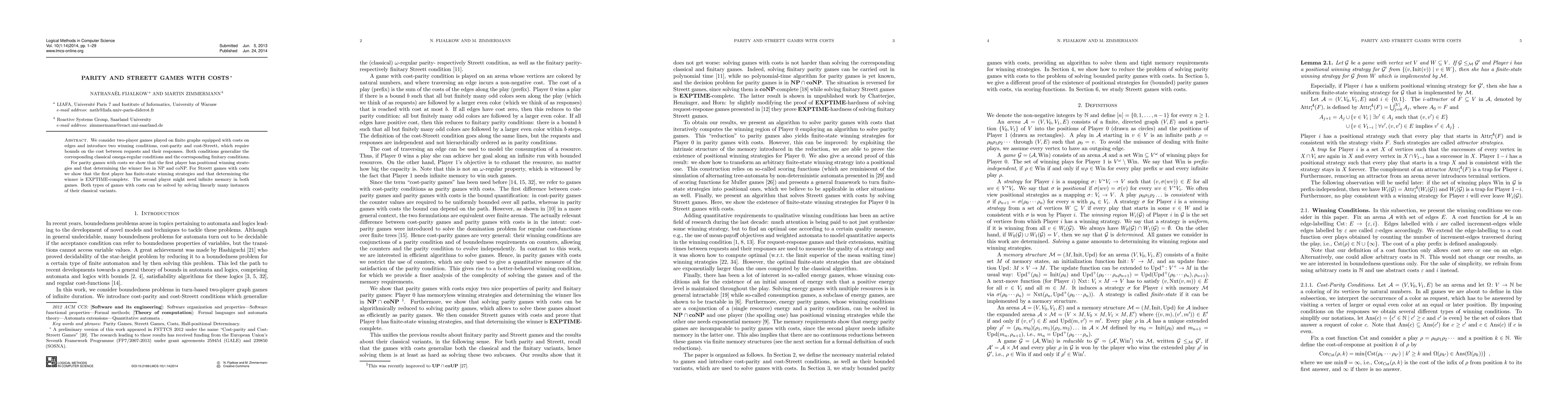 The paper analyzes two-player games on finite graphs with costs on edges, introducing cost-parity and cost-Streett winning conditions which generalize classical conditions.