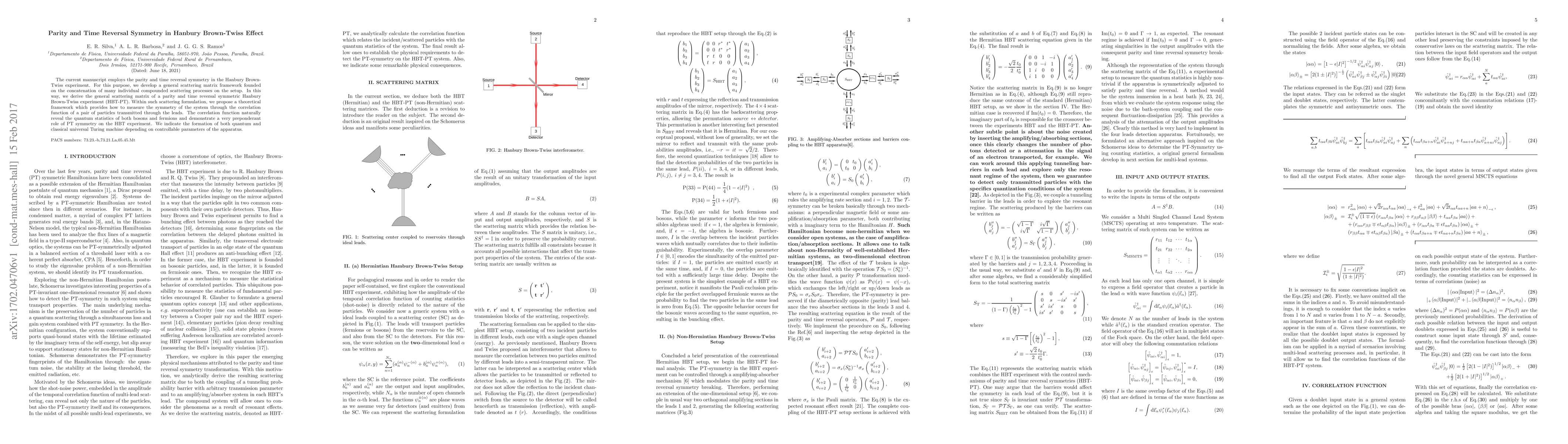 This paper develops a scattering matrix framework for the Hanbury Brown-Twiss effect, focusing on parity and time reversal symmetry. It proposes a theoretical method to measure these symmetries via particle correlation functions, revealing the quantum statistics of bosons and fermions and highlighting the significance of PT symmetry in the experiment.