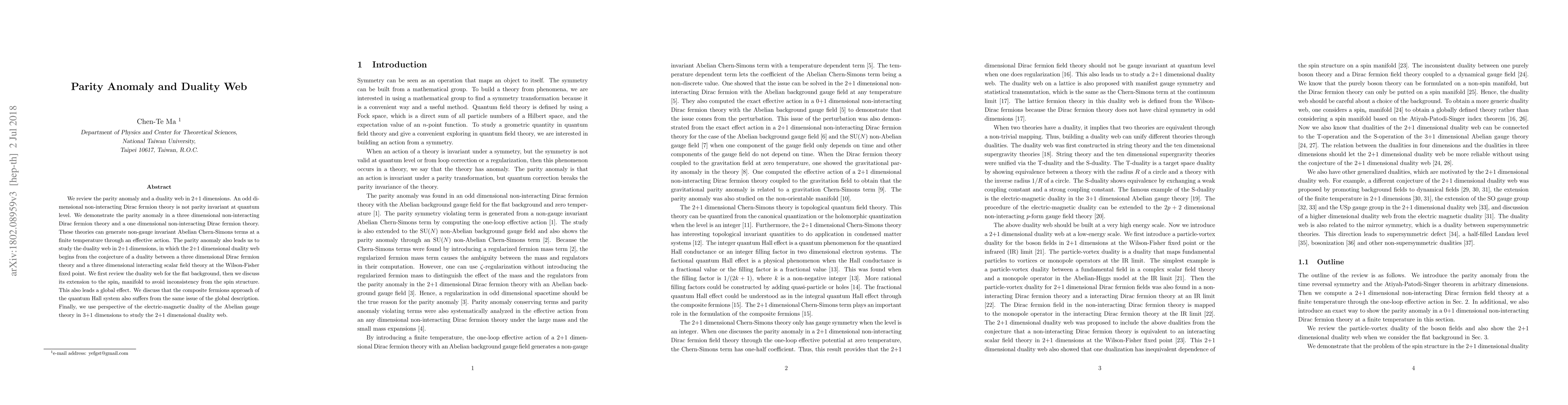 The paper presents a detailed analysis of the parity anomaly in odd-dimensional space-times and proposes a duality web in 2+1 dimensions, linking it to four-dimensional electric-magnetic duality, thereby providing a new perspective on topological quantum field theories.