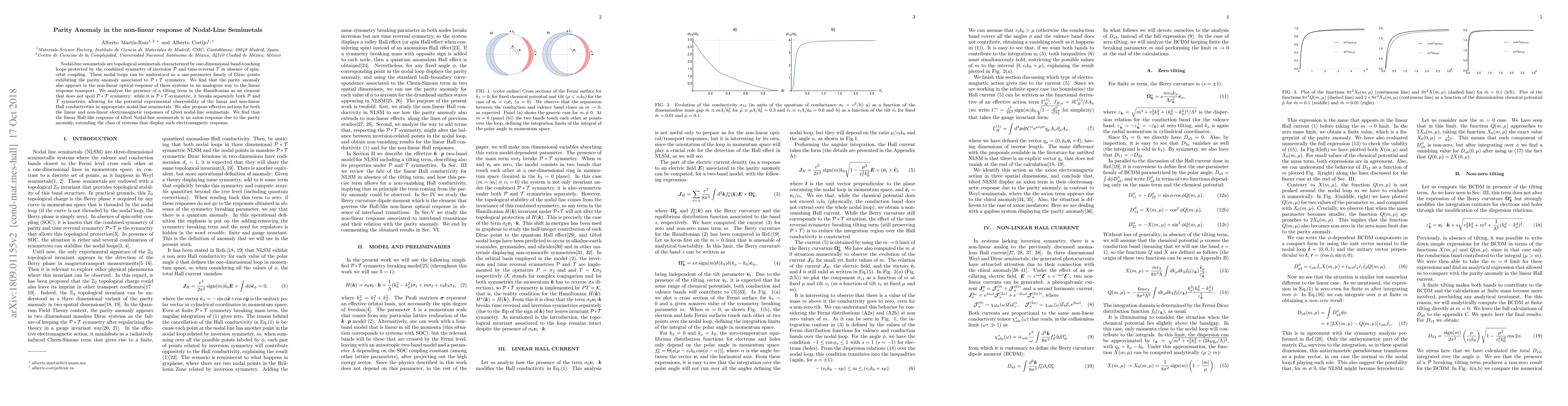 Nodal-line semimetals are topological semimetals characterized by one-dimensional band-touching loops protected by the combined symmetry of inversion $\mathcal{P}$ and time-reversal $\mathcal{T}$ in absence of spin-orbit coupling. These nodal loops can be understood as a one-parameter family of Dirac points exhibiting the parity anomaly associated to $\mathcal{P}*\mathcal{T}$ symmetry. We find that the parity anomaly also appears in the non-linear optical response of these systems in an analogous way to the linear response transport. We analyze the presence of a tilting term in the Hamiltonian as an element that does not spoil $\mathcal{P}*\mathcal{T}$ symmetry: while it is $\mathcal{P}*\mathcal{T}$-symmetric, it breaks separately both $\mathcal{P}$ and $\mathcal{T}$ symmetries, allowing for the potential experimental observability of the linear and non-linear Hall conductivities in appropriate nodal-line semimetals.
