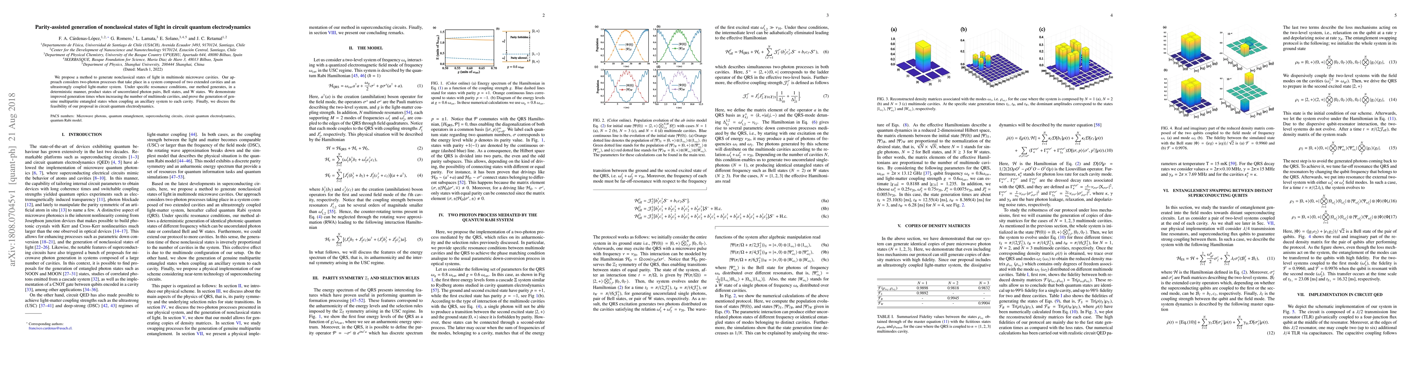 The research proposes a method to generate nonclassical states of light in multimode microwave cavities using two-photon processes in a system of two extended cavities and an ultrastrongly coupled light-matter system under specific resonance conditions.