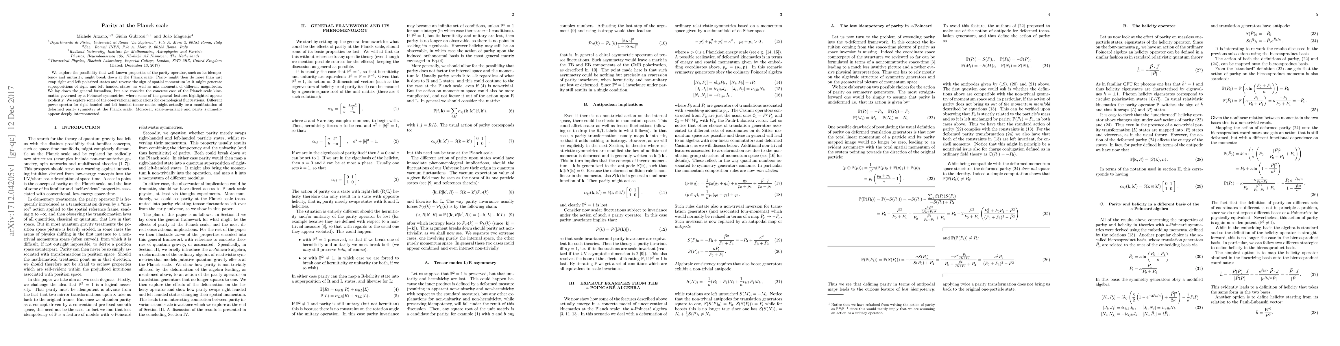We explore the possibility that well known properties of the parity operator, such as its idempotency and unitarity, might break down at the Planck scale. Parity might then do more than just swap right and left polarized states and reverse the sign of spatial momentum ${\bf k}$: it might generate superpositions of right and left handed states, as well as mix momenta of different magnitudes. We lay down the general formalism, but also consider the concrete case of the Planck scale kinematics governed by $\kappa$-Poincar\'e symmetries, where some of the general features highlighted appear explicitly. We explore some of the observational implications for cosmological fluctuations. Different power spectra for right handed and left handed tensor modes might actually be a manifestation of deformed parity symmetry at the Planck scale. Moreover, scale-invariance and parity symmetry appear deeply interconnected.