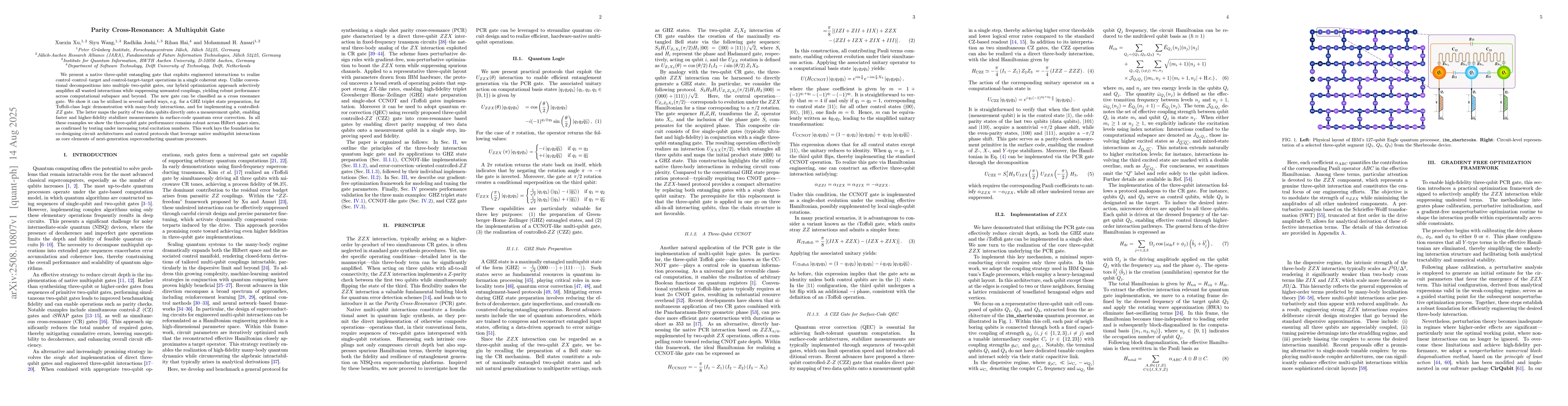 We present a native three-qubit entangling gate that exploits engineered interactions to realize control-control-target and control-target-target operations in a single coherent step. Unlike conventional decompositions into multiple two-qubit gates, our hybrid optimization approach selectively amplifies desired interactions while suppressing unwanted couplings, yielding robust performance across the computational subspace and beyond. The new gate can be classified as a cross-resonance gate. We show it can be utilized in several ways, for example, in GHZ triplet state preparation, Toffoli-class logic demonstrations with many-body interactions, and in implementing a controlled-ZZ gate. The latter maps the parity of two data qubits directly onto a measurement qubit, enabling faster and higher-fidelity stabilizer measurements in surface-code quantum error correction. In all these examples, we show that the three-qubit gate performance remains robust across Hilbert space sizes, as confirmed by testing under increasing total excitation numbers. This work lays the foundation for co-designing circuit architectures and control protocols that leverage native multiqubit interactions as core elements of next-generation superconducting quantum processors.
