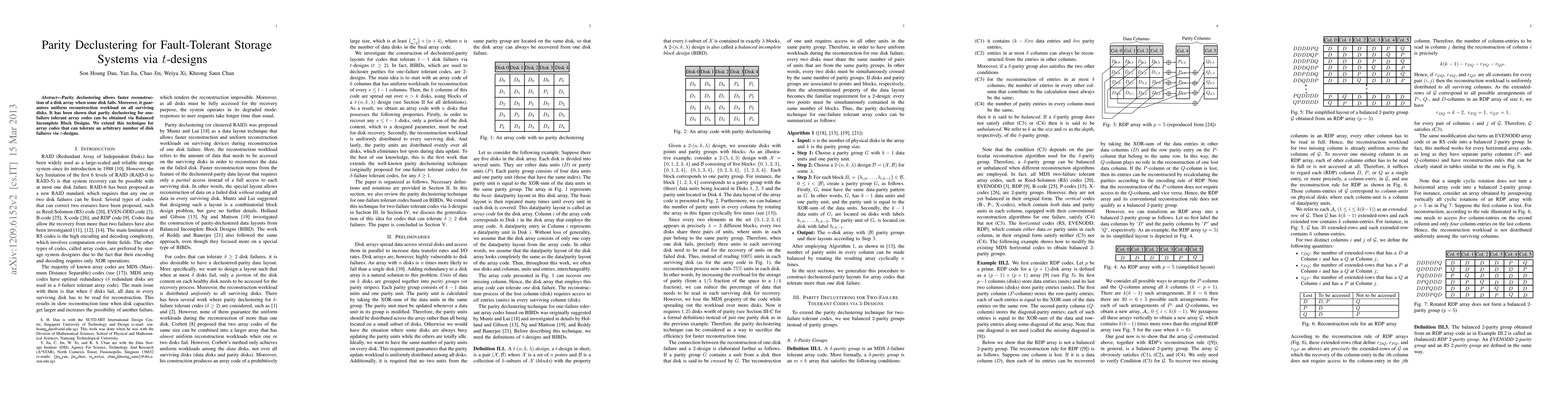 Parity declustering allows faster reconstruction of a disk array when some disk fails. Moreover, it guarantees uniform reconstruction workload on all surviving disks. It has been shown that parity declustering for one-failure tolerant array codes can be obtained via Balanced Incomplete Block Designs. We extend this technique for array codes that can tolerate an arbitrary number of disk failures via $t$-designs.