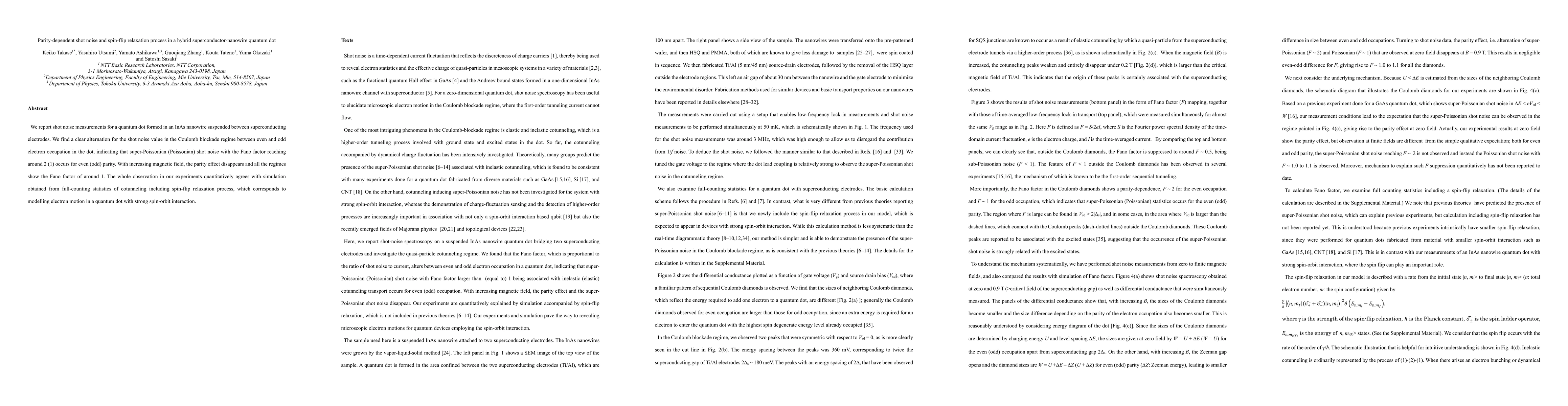 This paper reports on shot noise measurements in a quantum dot within an InAs nanowire connected to superconducting electrodes, revealing parity-dependent shot noise in the Coulomb blockade regime. The Fano factor alternates between 2 and 1 for even and odd electron occupations, respectively, and this effect vanishes with increasing magnetic field, aligning with simulations that incorporate spin-flip relaxation in strong spin-orbit interaction.