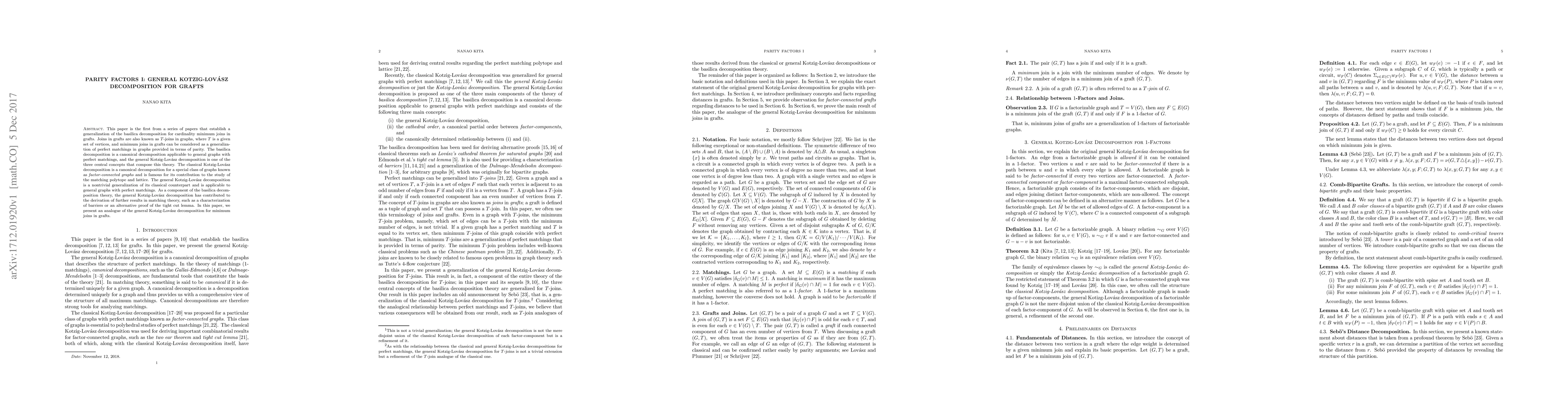 This paper is the first from a series of papers that establish a generalization of the basilica decomposition for cardinality minimum joins in grafts. Joins in grafts are also known as $T$-joins in graphs, where $T$ is a given set of vertices, and minimum joins in grafts can be considered as a generalization of perfect matchings in graphs provided in terms of parity. The basilica decomposition is a canonical decomposition applicable to general graphs with perfect matchings, and the general Kotzig-Lov\'asz decomposition is one of the three central concepts that compose this theory. The classical Kotzig-Lov\'asz decomposition is a canonical decomposition for a special class of graphs known as {\em factor-connected graphs} and is famous for its contribution to the study of the matching polytope and lattice. The general Kotzig-Lov\'asz decomposition is a nontrivial generalization of its classical counterpart and is applicable to general graphs with perfect matchings. As a component of the basilica decomposition theory, the general Kotzig-Lov\'asz decomposition has contributed to the derivation of further results in matching theory, such as a characterization of barriers or an alternative proof of the tight cut lemma. In this paper, we present an analogue of the general Kotzig-Lov\'asz decomposition for minimum joins in grafts.