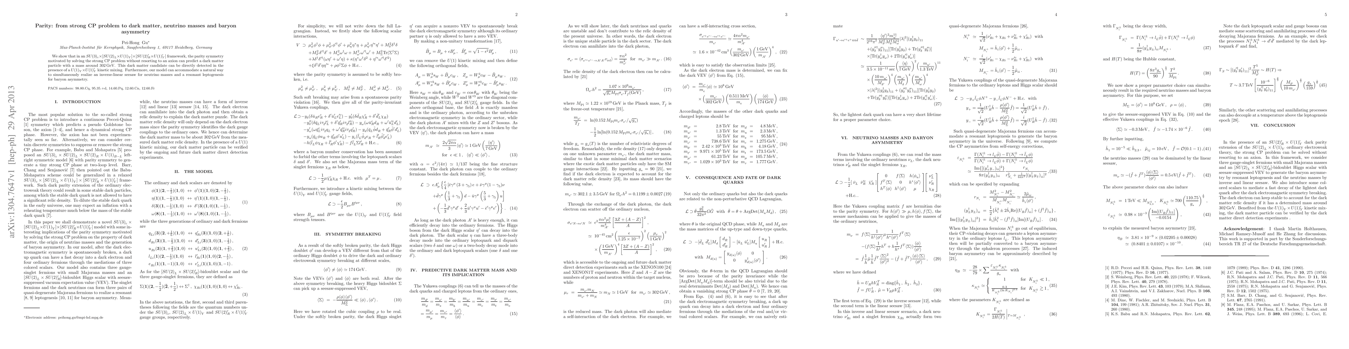 The paper introduces a parity symmetry-based approach to solve the strong CP problem, predict a dark matter candidate, and simultaneously address neutrino masses and baryon asymmetry within a unified framework.