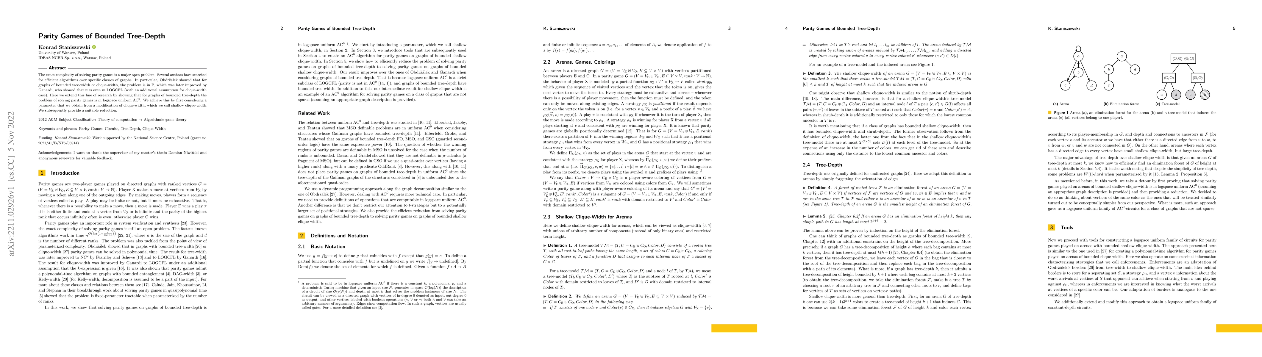 This paper demonstrates that solving parity games on graphs with bounded tree-depth can be achieved in logspace uniform $\text{AC}^0$, extending previous results on graphs with bounded tree-width or clique-width. The authors achieve this through a modified parameter called shallow clique-width and a suitable reduction.