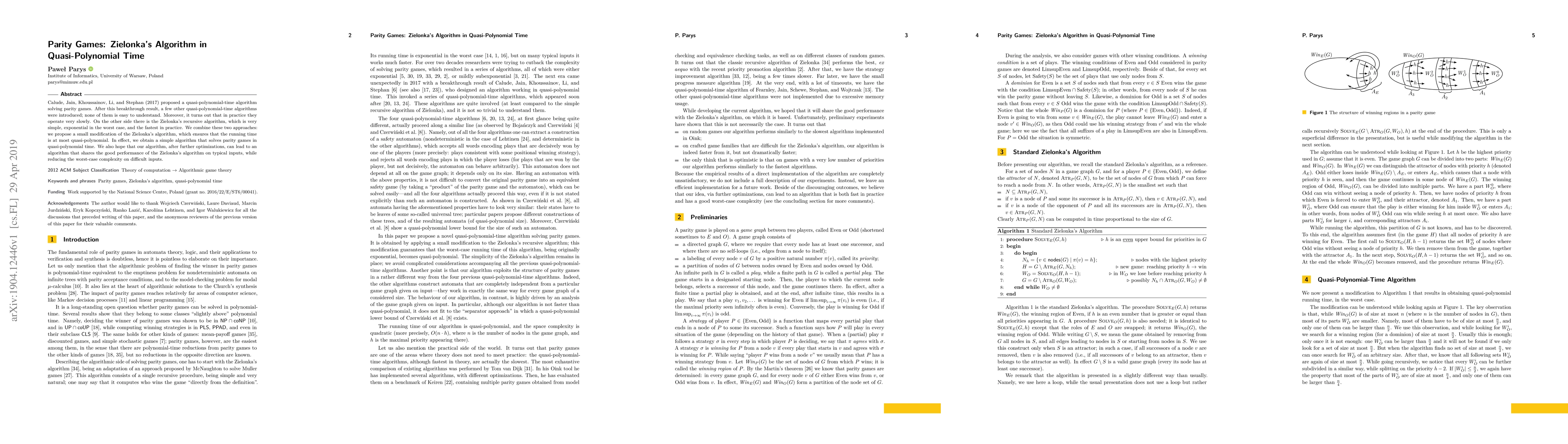 This paper proposes a modified version of Zielonka's algorithm to solve parity games in quasi-polynomial time, combining simplicity with practical efficiency. The aim is to achieve good performance on typical inputs while reducing worst-case complexity for difficult cases.