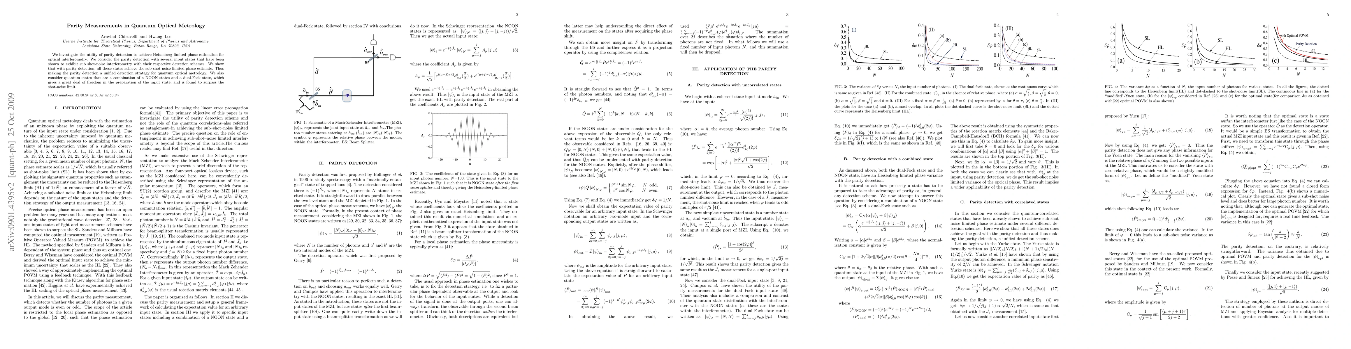 This paper explores parity detection for achieving Heisenberg-limited phase estimation in optical interferometry, demonstrating its efficacy across various input states. It finds that parity detection unifies quantum optical metrology and surpasses shot-noise limits when using combined NOON and dual-Fock states.