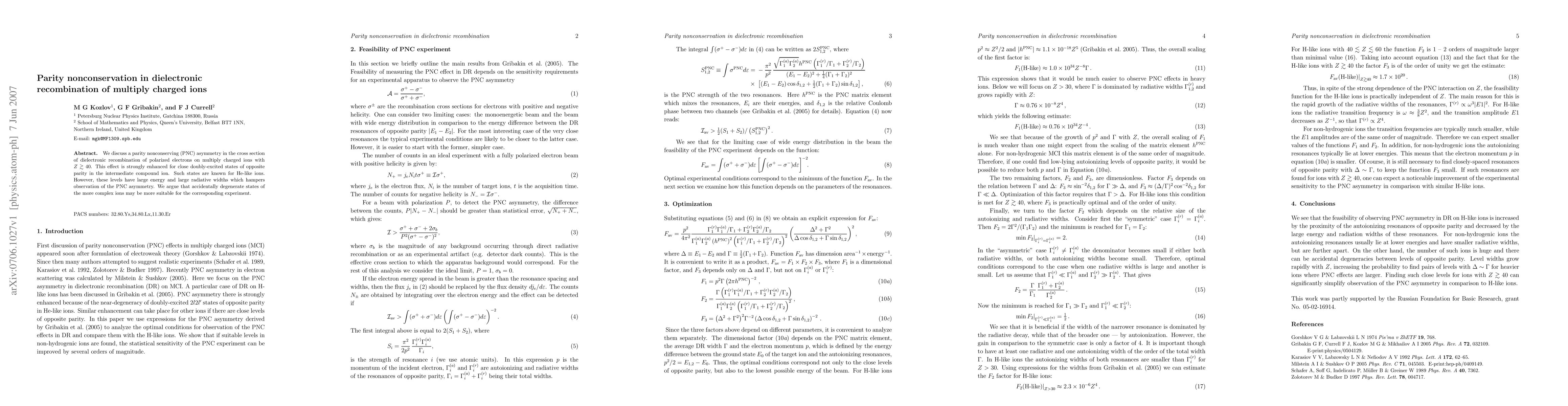 We discuss a parity nonconserving (PNC) asymmetry in the cross section of dielectronic recombination of polarized electrons on multiply charged ions with Z>40. This effect is strongly enhanced for close doubly-excited states of opposite parity in the intermediate compound ion. Such states are known for He-like ions. However, these levels have large energy and large radiative widths which hampers observation of the PNC asymmetry. We argue that accidentally degenerate states of the more complex ions may be more suitable for the corresponding experiment.