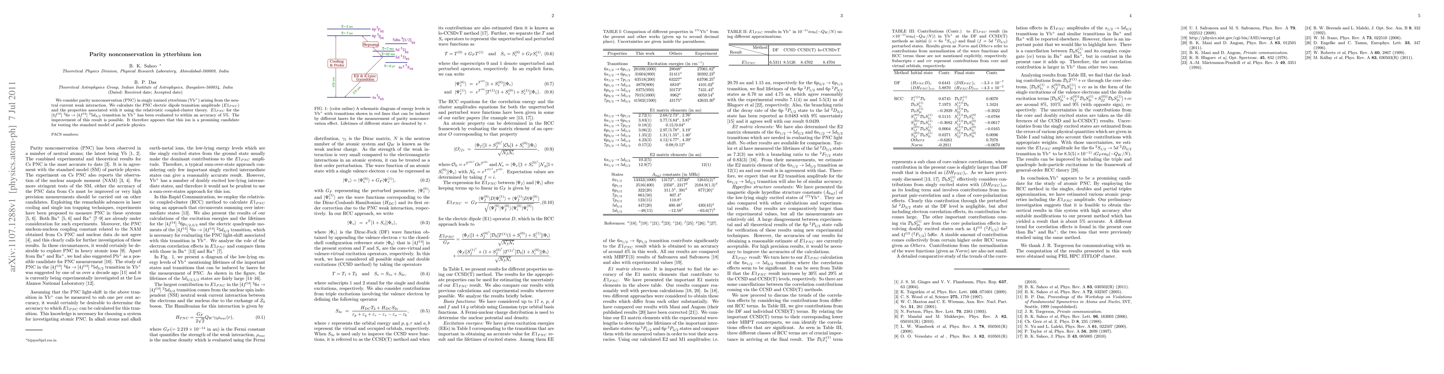 This paper evaluates parity nonconservation in singly ionized ytterbium (Yb+) due to the neutral current weak interaction, calculating the electric dipole transition amplitude with 5% accuracy using relativistic coupled-cluster theory. The findings suggest Yb+ is a promising candidate for testing the standard model of particle physics.