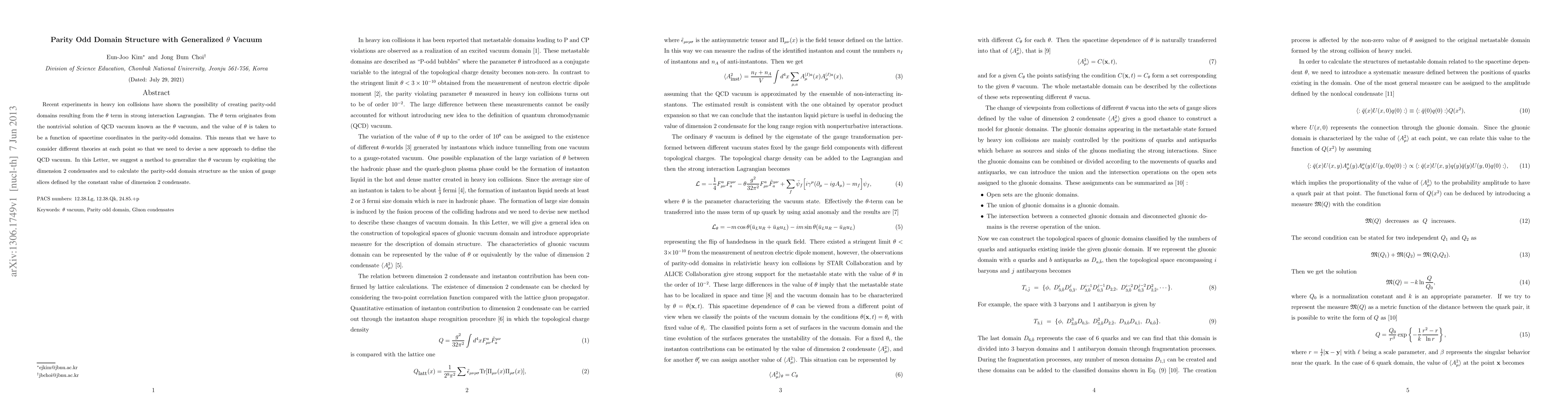 Recent experiments in heavy ion collisions have shown the possibility of creating parity-odd domains resulting from the $\theta$ term in strong interaction Lagrangian. The $\theta$ term originates from the nontrivial solution of QCD vacuum known as the $\theta$ vacuum, and the value of $\theta$ is taken to be a function of spacetime coordinates in the parity-odd domains. This means that we have to consider different theories at each point so that we need to devise a new approach to define the QCD vacuum. In this Letter, we suggest a method to generalize the $\theta$ vacuum by exploiting the dimension 2 condensates and to calculate the parity-odd domain structure as the union of gauge slices defined by the constant value of dimension 2 condensate.