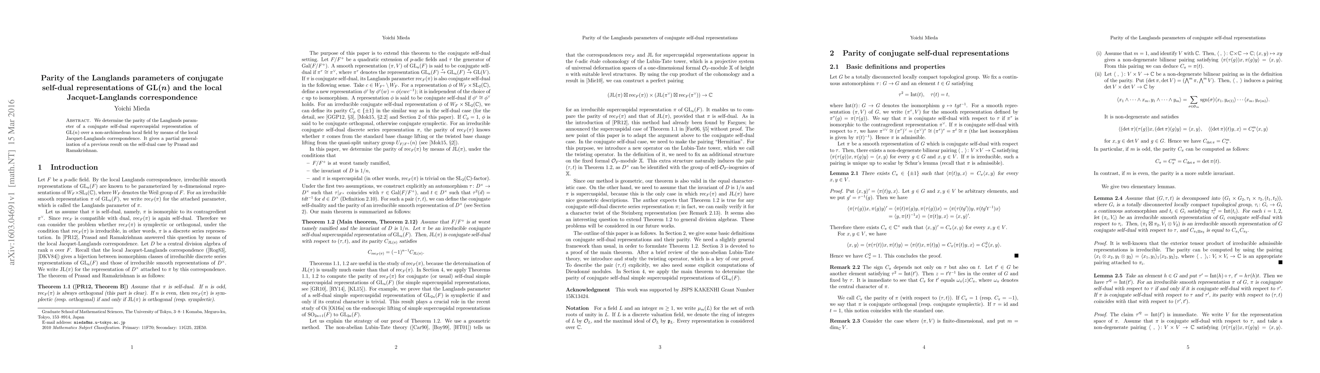 This paper investigates the parity of Langlands parameters for conjugate self-dual supercuspidal representations of GL(n) over non-archimedean local fields, utilizing the local Jacquet-Langlands correspondence. It extends prior work by Prasad and Ramakrishnan on the self-dual case.