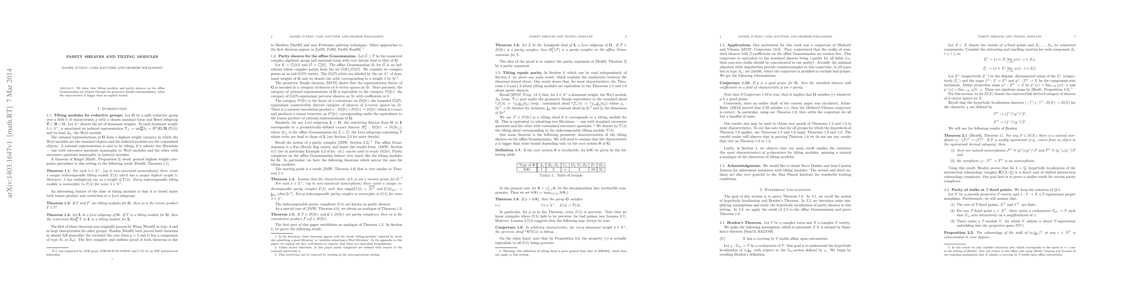 The paper establishes a relationship between tilting modules and parity sheaves on the affine Grassmannian via the geometric Satake correspondence, under certain conditions on the characteristic.