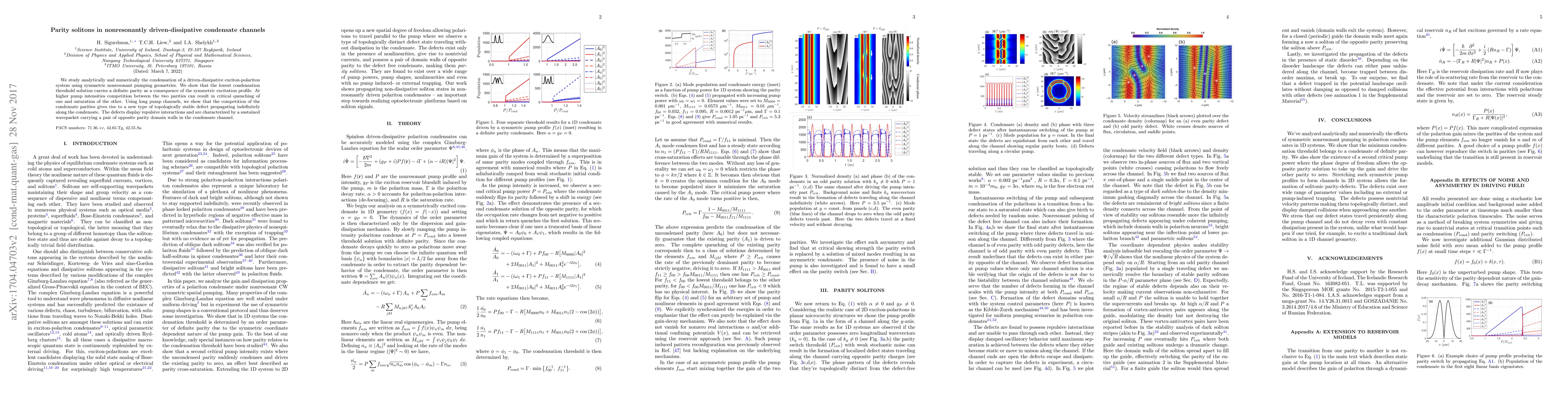 The paper presents a detailed analysis of parity solitons in driven-dissipative condensate channels, revealing their formation, stability, and interactions.