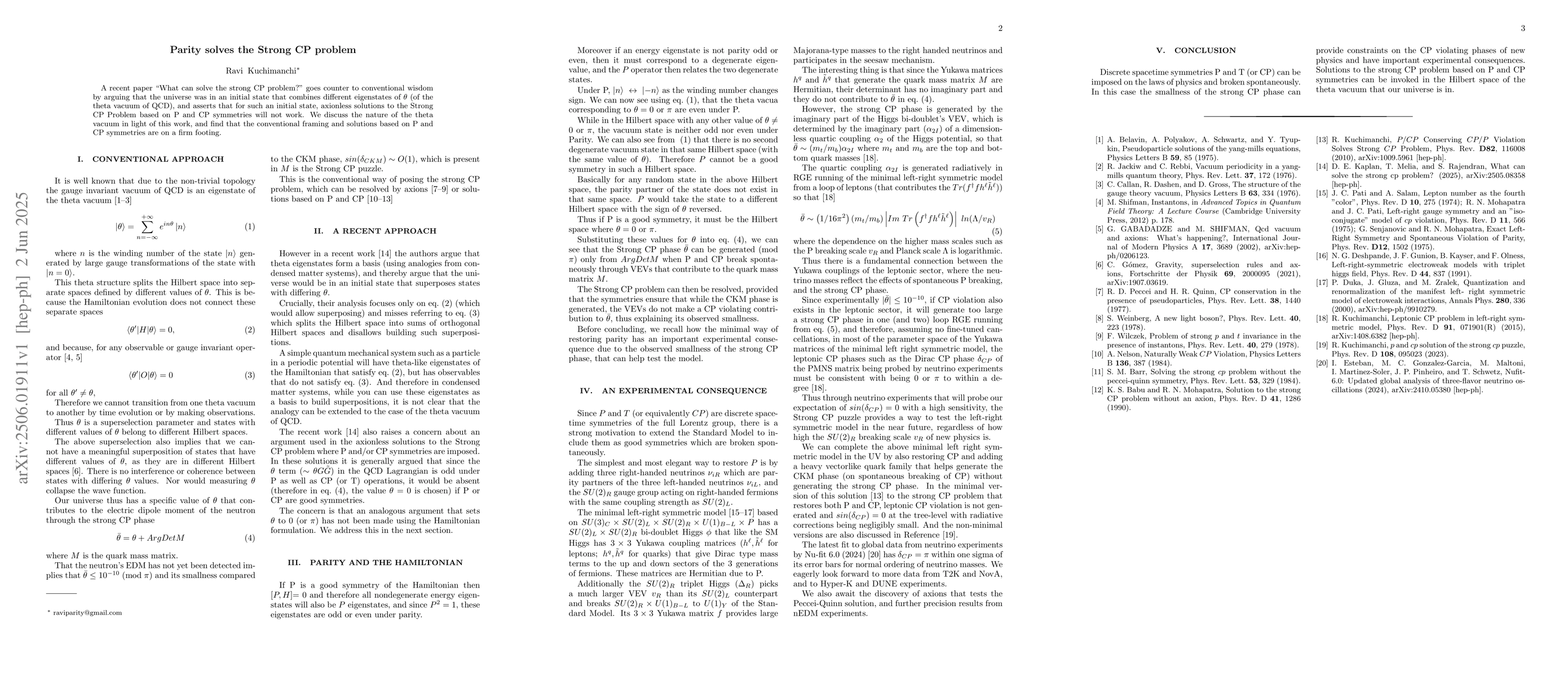A recent paper "What can solve the strong CP problem?" goes counter to conventional wisdom by arguing that the universe was in an initial state that combines different eigenstates of $\theta$ (of the theta vacuum of QCD), and asserts that for such an initial state, axionless solutions to the Strong CP Problem based on P and CP symmetries will not work. We discuss the nature of the theta vacuum in light of this work, and find that the conventional framing and solutions based on P and CP symmetries are on a firm footing.