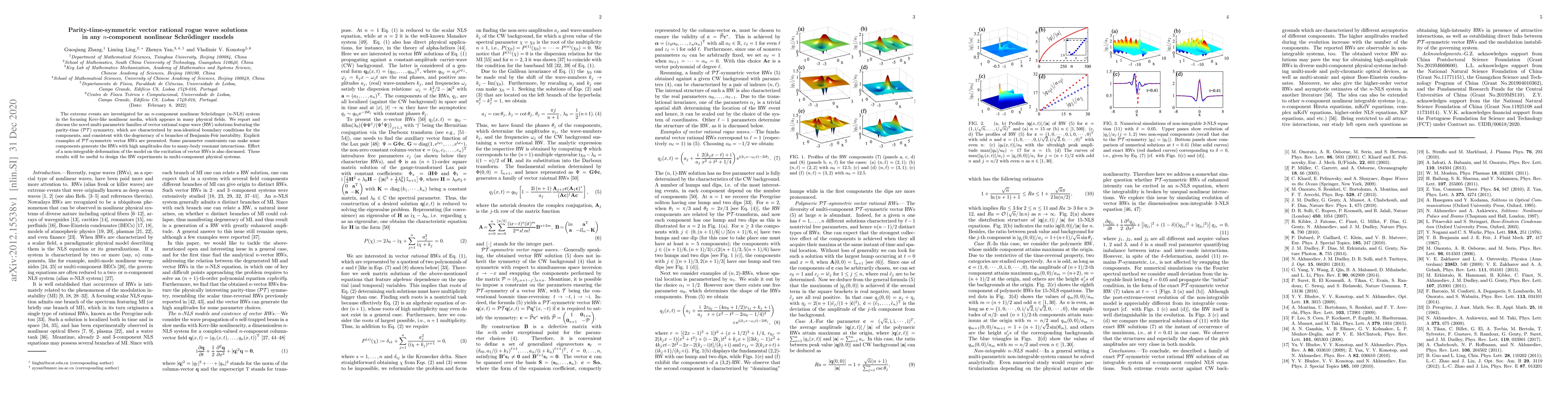 This paper investigates extreme events in $n$-component nonlinear Schrödinger systems, reporting novel vector rational rogue wave solutions with parity-time symmetry. These solutions arise from many-body resonant interactions and can be influenced by non-integrable deformations, providing insights for designing rogue wave experiments in multi-component systems.