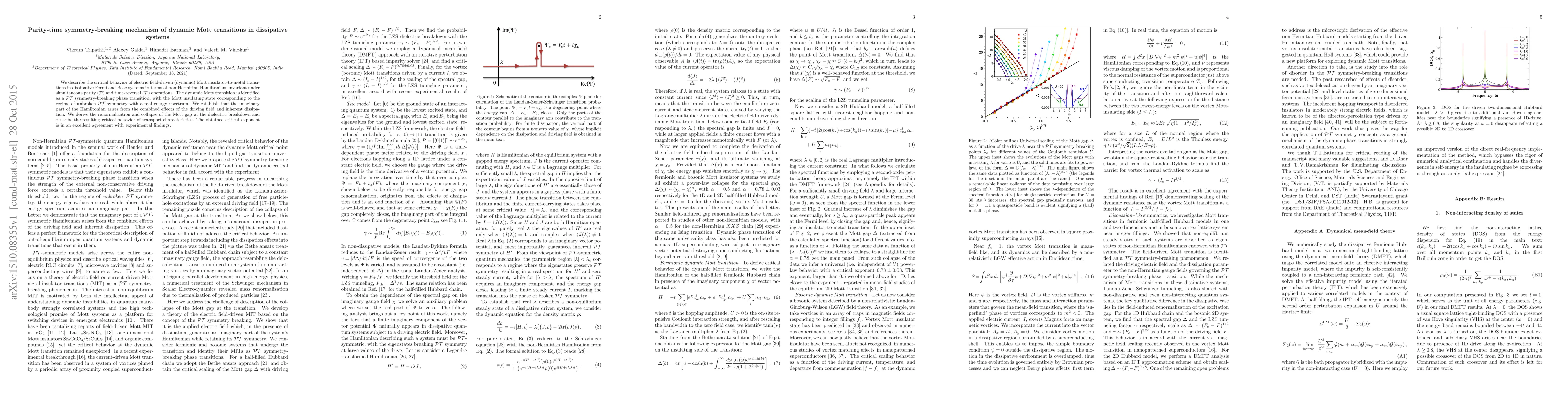 This paper explores electric field-induced dynamic Mott transitions in dissipative Fermi and Bose systems using non-Hermitian Hamiltonians. It identifies the transition as a PT symmetry-breaking phase, with the insulating state linked to unbroken PT symmetry, and derives the critical behavior and collapse of the Mott gap, showing agreement with experimental results.