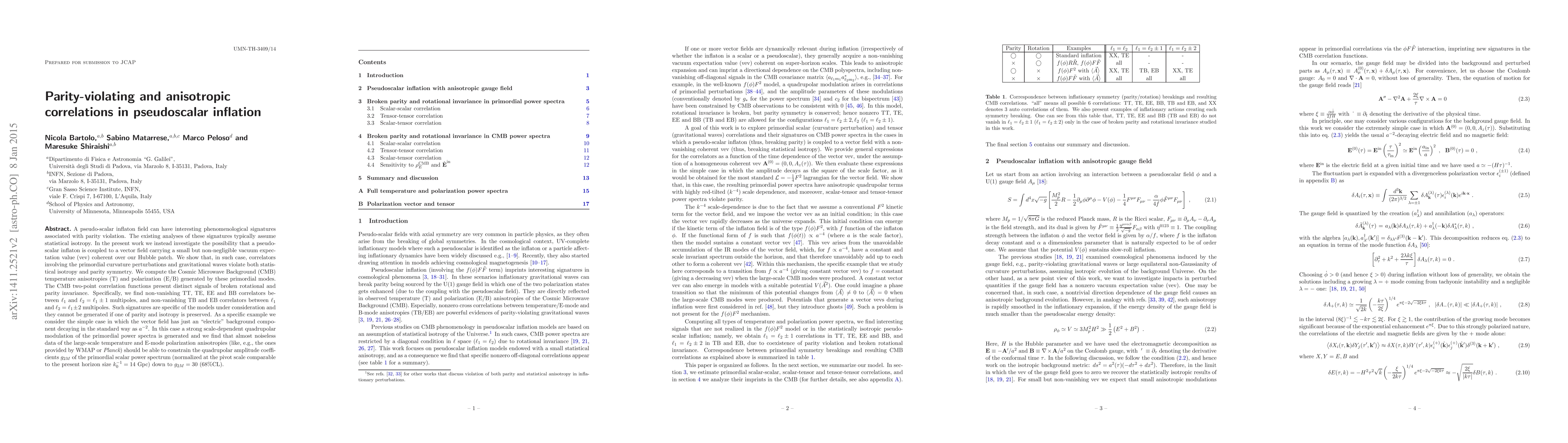 This paper explores parity-violating and anisotropic correlations in pseudoscalar inflation, demonstrating that coupling a pseudo-scalar inflaton to a vector field with a non-negligible vacuum expectation value can break statistical isotropy and parity symmetry. It predicts distinct CMB anisotropies and polarization signals, including non-vanishing correlators between specific multipoles, which could be constrained by current CMB data.