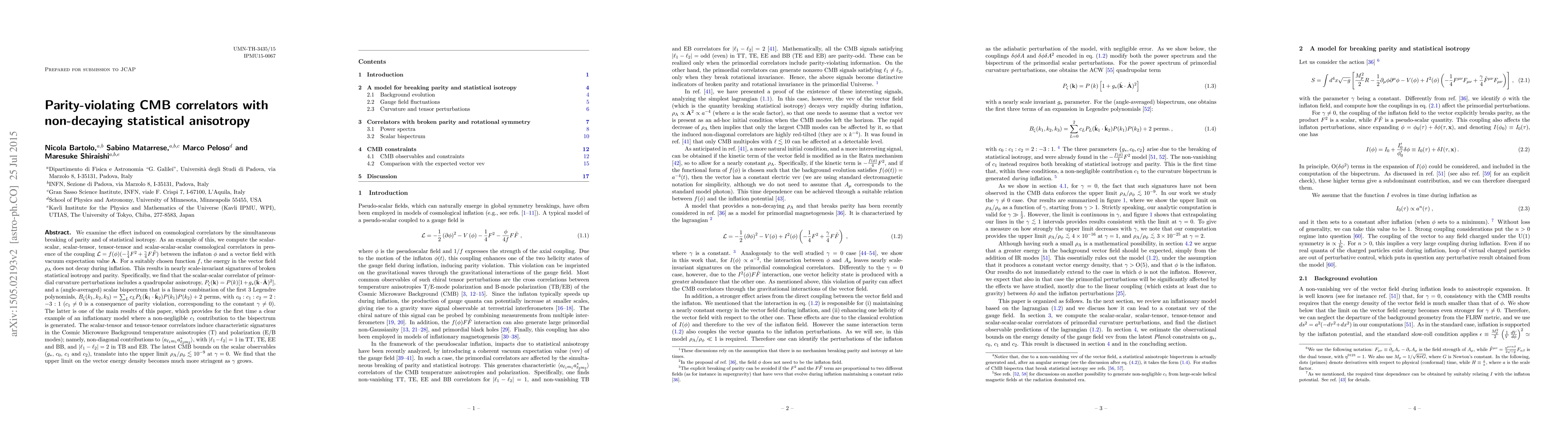 We examine the cosmological correlators induced by the simultaneous breaking of parity and of statistical isotropy, e.g., in presence of the coupling ${\cal L} = f(\phi) ( - \frac{1}{4} F^2 + \frac{\gamma}{4} F \tilde{F} )$ between the inflaton $\phi$ and a vector field with vacuum expectation value ${\bf A}$. For a suitably chosen function $f$, the energy in the vector field $\rho_{\rm A}$ does not decay during inflation. This results in nearly scale-invariant signatures of broken statistical isotropy and parity. Specifically, we find that the scalar-scalar correlator of primordial curvature perturbations includes a quadrupolar anisotropy, $P_\zeta ( {\bf k}) = P(k)[ 1 + g_* ( \hat{\bf k} \cdot \hat{\bf A})^2]$, and a (angle-averaged) scalar bispectrum that is a linear combination of the first $3$ Legendre polynomials, $B_\zeta(k_1, k_2, k_3) = \sum_L c_L P_L (\hat{\bf k}_1 \cdot \hat{\bf k}_2) P(k_1) P(k_2) + 2~{\rm perms} $, with $c_0 : c_1 : c_2 = 2 : -3 : 1$ ($c_1 \neq 0$ is a consequence of parity violation, corresponding to the constant $\gamma \neq 0$). The latter is one of the main results of this paper, which provides for the first time a clear example of an inflationary model where a non-negligible $c_1$ contribution to the bispectrum is generated. The scalar-tensor and tensor-tensor correlators induce characteristic signatures in the Cosmic Microwave Background temperature anisotropies (T) and polarization (E/B modes); namely, non-diagonal contributions to $\langle a_{\ell_1 m_1} a_{\ell_2 m_2}^* \rangle$, with $|\ell_1 - \ell_2| = 1$ in TT, TE, EE and BB, and $|\ell_1 - \ell_2| = 2$ in TB and EB. The latest CMB bounds on the scalar observables ($g_*$, $c_0$, $c_1$ and $c_2$), translate into the upper limit $\rho_{\rm A} / \rho_\phi \lesssim 10^{-9}$ at $\gamma=0$. We find that the upper limit on the vector energy density becomes much more stringent as $\gamma$ grows.
