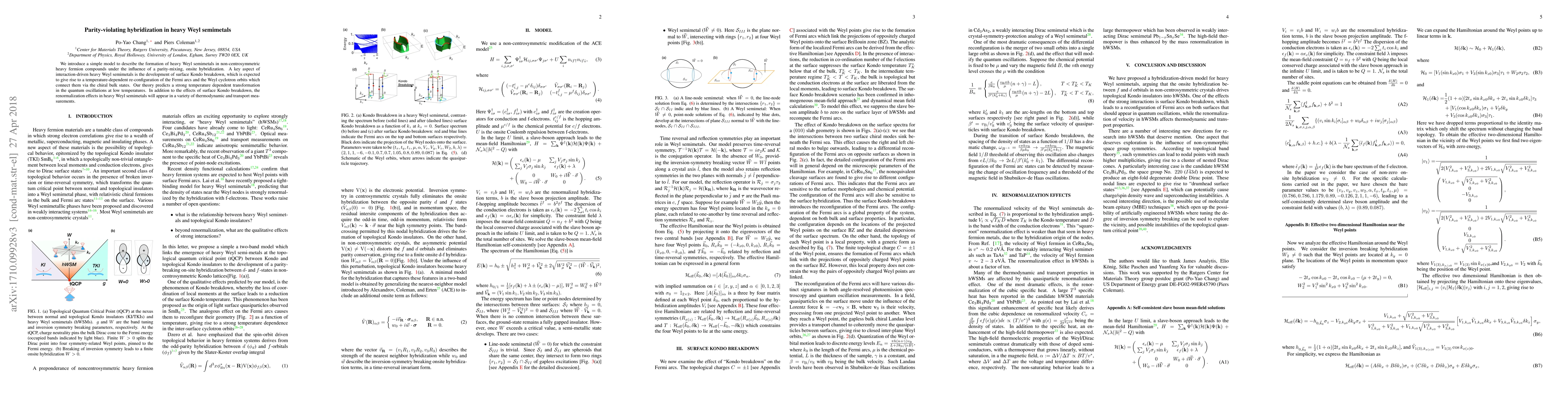 The paper introduces a model explaining the formation of heavy Weyl semimetals in non-centrosymmetric compounds through parity-violating onsite hybridization, predicting a strong temperature-dependent transformation in quantum oscillations due to surface Kondo breakdown. It also discusses the impact of renormalization effects on thermodynamic and transport properties.