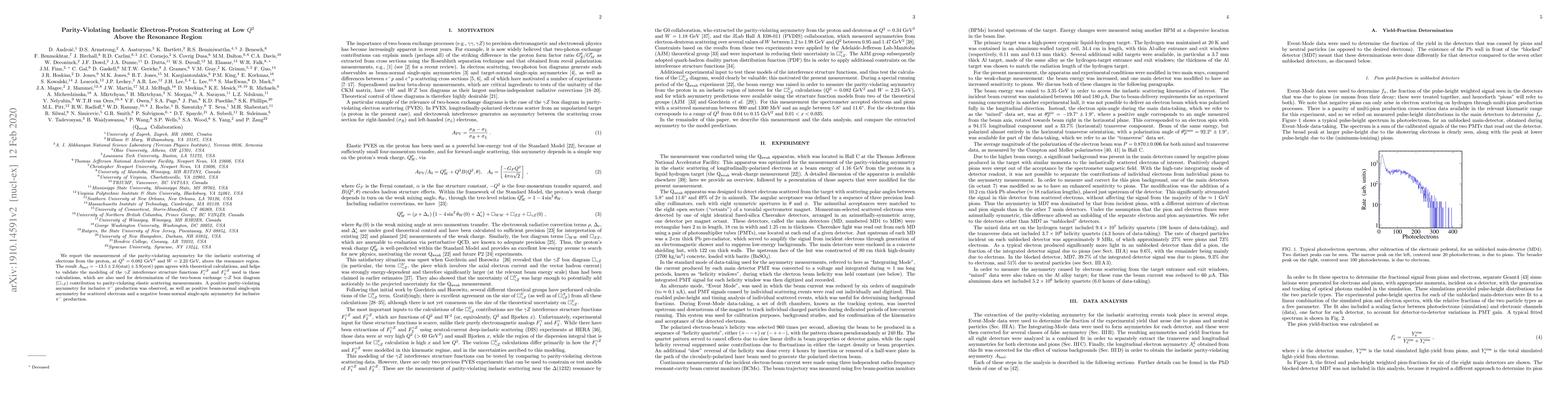 This study measures the parity-violating asymmetry in electron-proton scattering at low $Q^2$ above the resonance region, yielding $A_{\rm Inel} = -13.5 \pm 2.0 \pm 3.9$ ppm, which aligns with theoretical predictions and validates the $\gamma Z$ interference structure functions used in these calculations. Additionally, it observes positive asymmetries in inclusive $\pi^-$ production and beam-normal single-spin asymmetries.