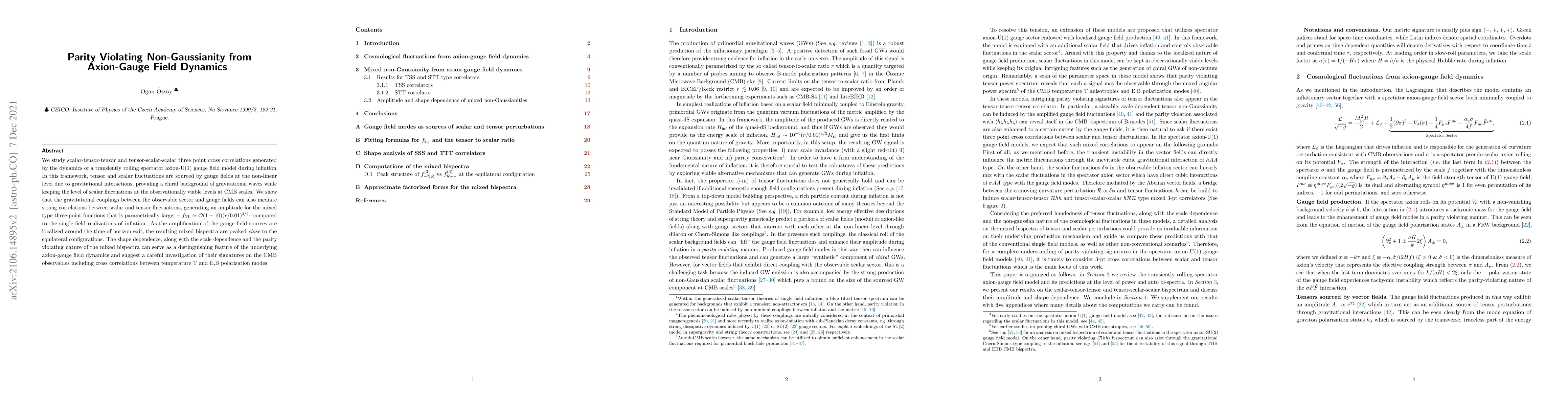 We study scalar-tensor-tensor and tensor-scalar-scalar three point cross correlations generated by the dynamics of a transiently rolling spectator axion-$\mathrm U(1)$ gauge field model during inflation. In this framework, tensor and scalar fluctuations are sourced by gauge fields at the non-linear level due to gravitational interactions, providing a chiral background of gravitational waves while keeping the level of scalar fluctuations at the observationally viable levels at CMB scales. We show that the gravitational couplings between the observable sector and gauge fields can also mediate strong correlations between scalar and tensor fluctuations, generating an amplitude for the mixed type three-point functions that is parametrically larger -- $f_{\rm NL} \simeq \mathcal{O}(1-10) (r/0.01)^{3/2}$-- compared to the single-field realizations of inflation. As the amplification of the gauge field sources are localized around the time of horizon exit, the resulting mixed bispectra are peaked {\it close} to the equilateral configurations. The shape dependence, along with the scale dependence and the parity violating nature of the mixed bispectra can serve as a distinguishing feature of the underlying axion-gauge field dynamics and suggest a careful investigation of their signatures on the CMB observables including cross correlations between temperature T and E,B polarization modes.