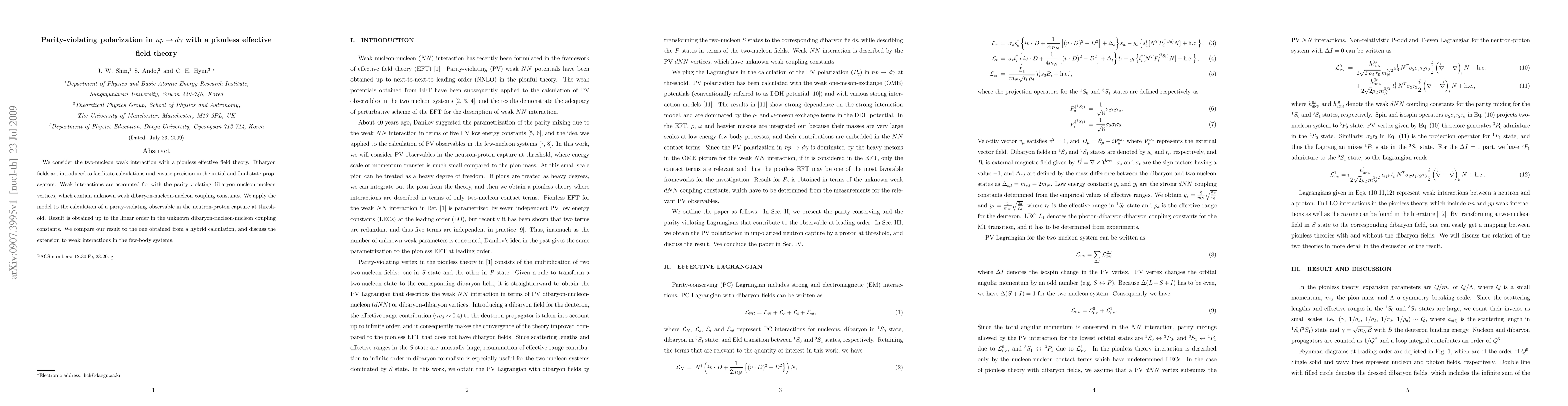 This paper employs a pionless effective field theory to study the two-nucleon weak interaction, introducing dibaryon fields for precise calculations. It calculates a parity-violating observable in neutron-proton capture at threshold, obtaining results up to linear order in unknown coupling constants and comparing them to hybrid calculations.