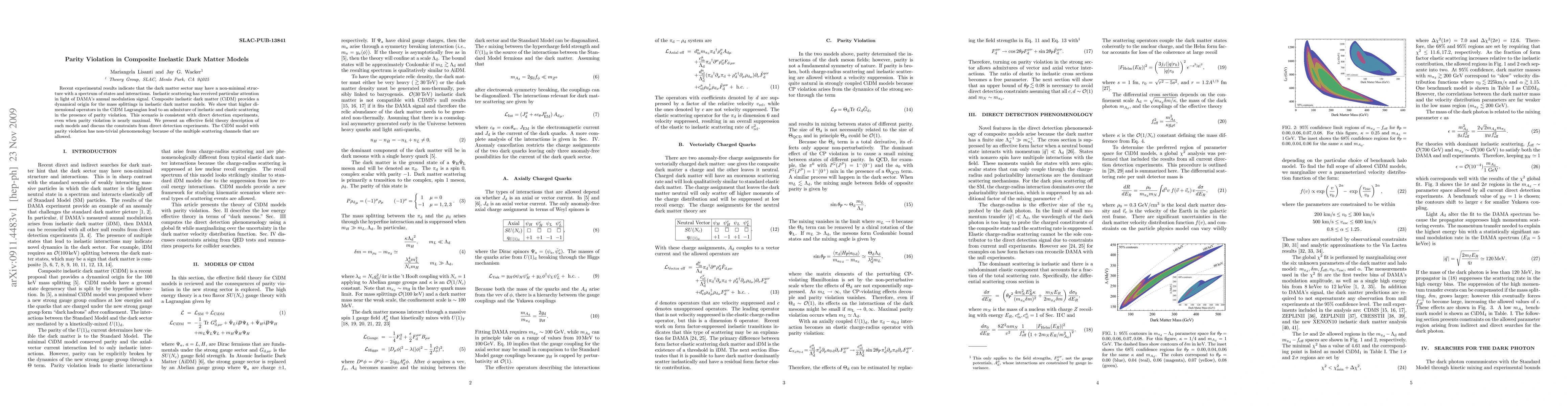 Recent experimental results indicate that the dark matter sector may have a non-minimal structure with a spectrum of states and interactions. Inelastic scattering has received particular attention in light of DAMA's annual modulation signal. Composite inelastic dark matter (CiDM) provides a dynamical origin for the mass splittings in inelastic dark matter models. We show that higher dimensional operators in the CiDM Lagrangian lead to an admixture of inelastic and elastic scattering in the presence of parity violation. This scenario is consistent with direct detection experiments, even when parity violation is nearly maximal. We present an effective field theory description of such models and discuss the constraints from direct detection experiments. The CiDM model with parity violation has non-trivial phenomenology because of the multiple scattering channels that are allowed.