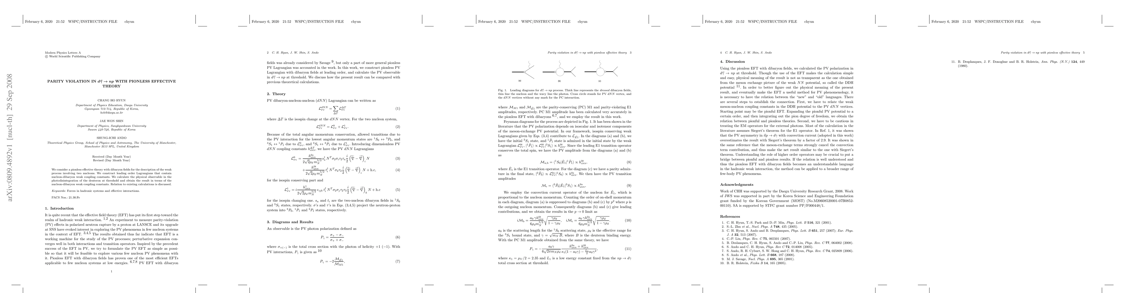 We consider a pionless effective theory with dibaryon fields for the description of the weak process involving two nucleons. We construct leading order Lagrangians that contain nucleon-dibaryon weak coupling constants. We calculate the physical observable in the photodisintegration of the deuteron at threshold and obtain the result in terms of the nucleon-dibaryon weak coupling constants. Relation to existing calculations is discussed.