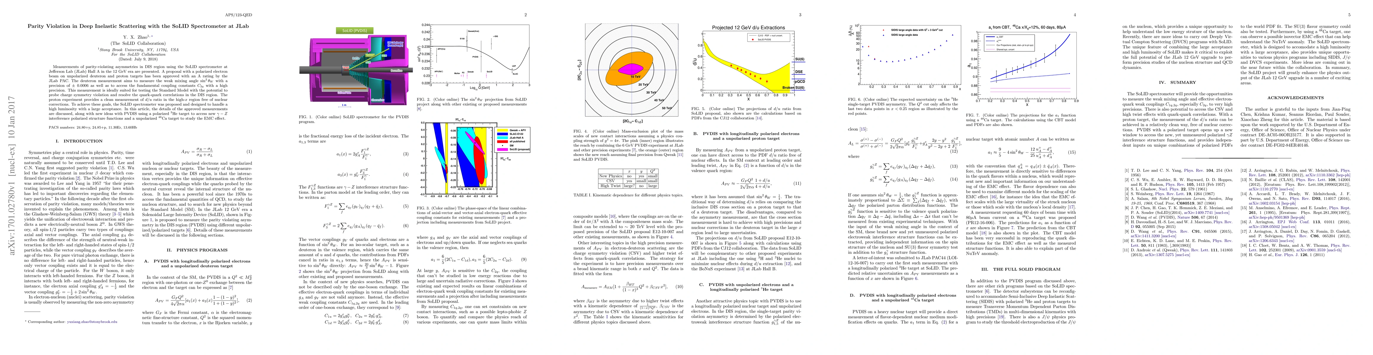 Measurements of parity-violating asymmetries in DIS region using the SoLID spectrometer at Jefferson Lab (JLab) Hall A in the 12 GeV era are presented. A proposal with a polarized electron beam on unpolarized deuteron and proton targets has been approved with an A rating by the JLab PAC. The deuteron measurement aims to measure the weak mixing angle $\sin^2 \theta_W $ with a precision of $\pm$ 0.0006 as well as to access the fundamental coupling constants $C_{2q}$ with a high precision. This measurement is ideally suited for testing the Standard Model with the potential to probe charge symmetry violation and resolve the quark-quark correlations in the DIS region. The proton experiment provides a clean measurement of $d/u$ ratio in the high-$x$ region free of nuclear corrections. To achieve these goals, the SoLID spectrometer was proposed and designed to handle a high luminosity with a large acceptance. In this article, the details of the approved measurements are discussed, along with new ideas with PVDIS using a polarized $^3$He target to access new $\gamma-Z$ interference polarized structure functions and a unpolarized $^{48}$Ca target to study the EMC effect.