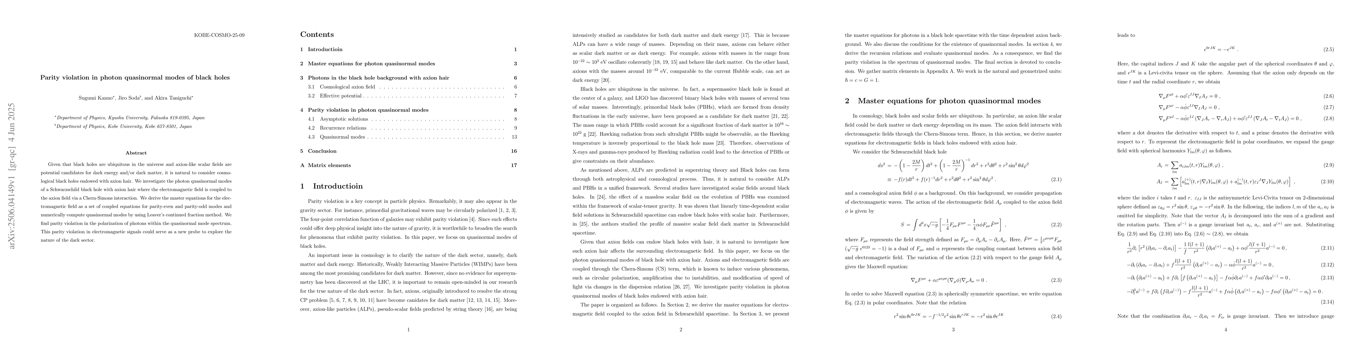 This research explores black holes with axion hair, finding parity violation in photon quasinormal modes through numerical computation using Leaver's method. This could offer a novel way to study dark sector properties.
